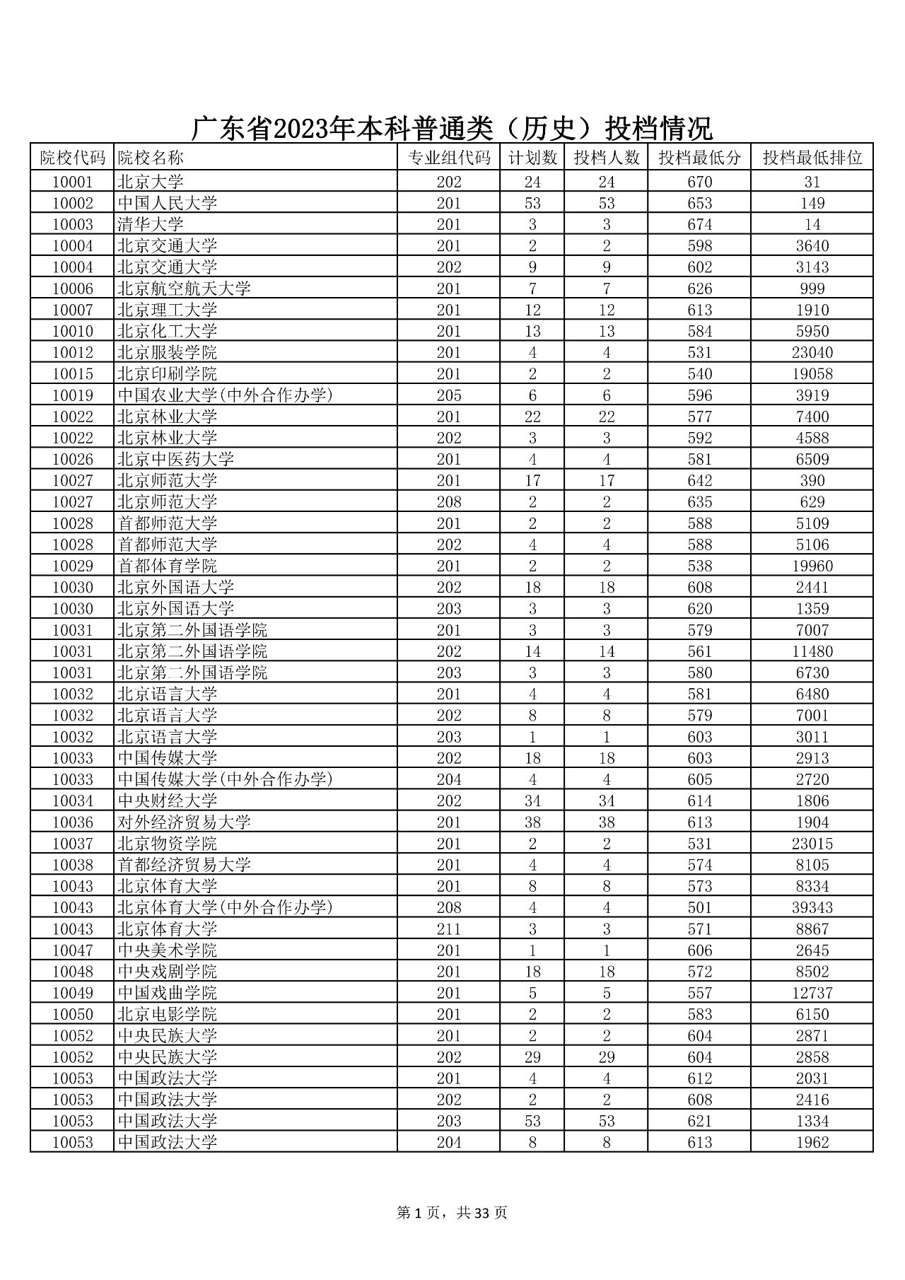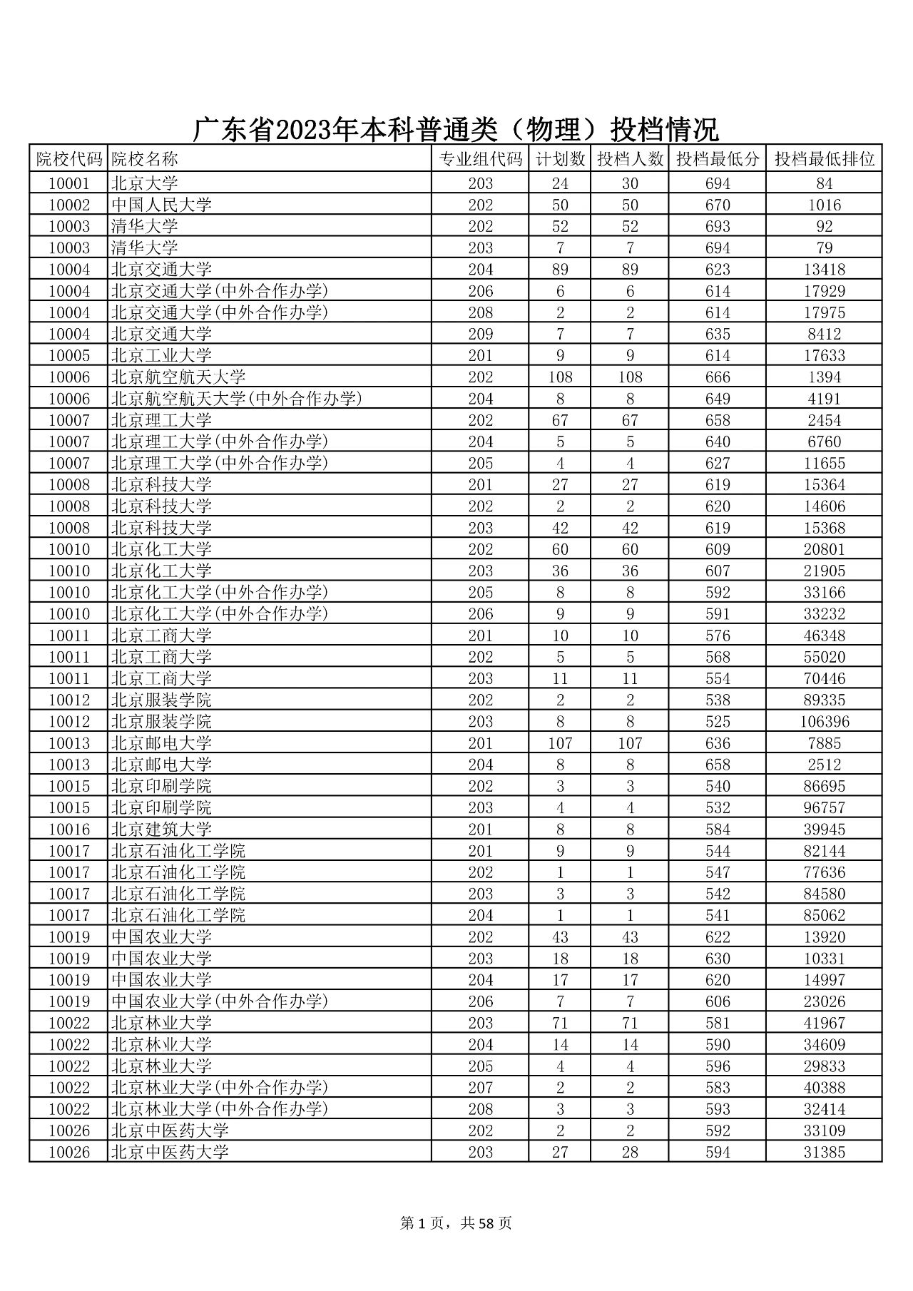 目前广东省教育考试院已发布广东省2023年本科普通类(物理、历史)投档情况,以下是2023年广东省投档分数线。