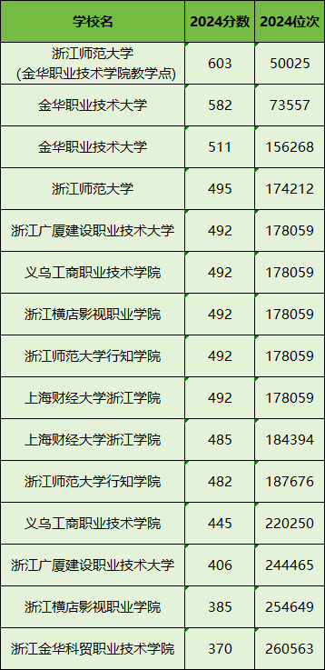 如下为各位整理了2024年金华各大学考生的最低分数线一览表,供大家参考: