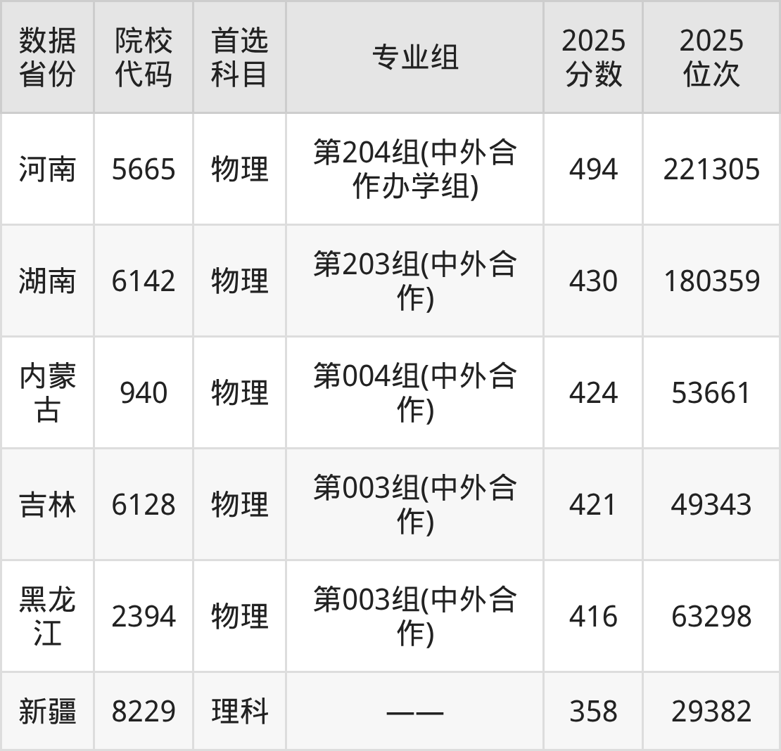 其他招生省份的录取分数各有不同,但“中外合作办学专业录取线通常低于本校普通专业”这一规律具有普遍性。考生应重点查询自己所在省份2025年的具体分数和位次,结合历年分数波动情况进行综合判断。