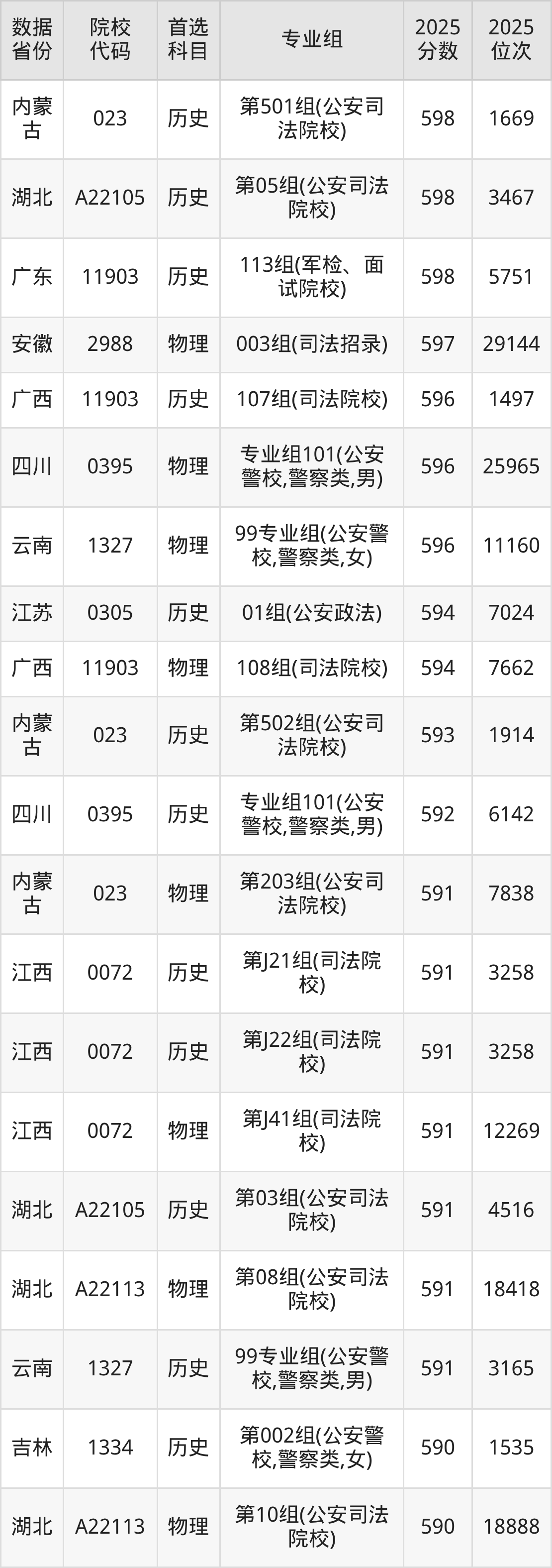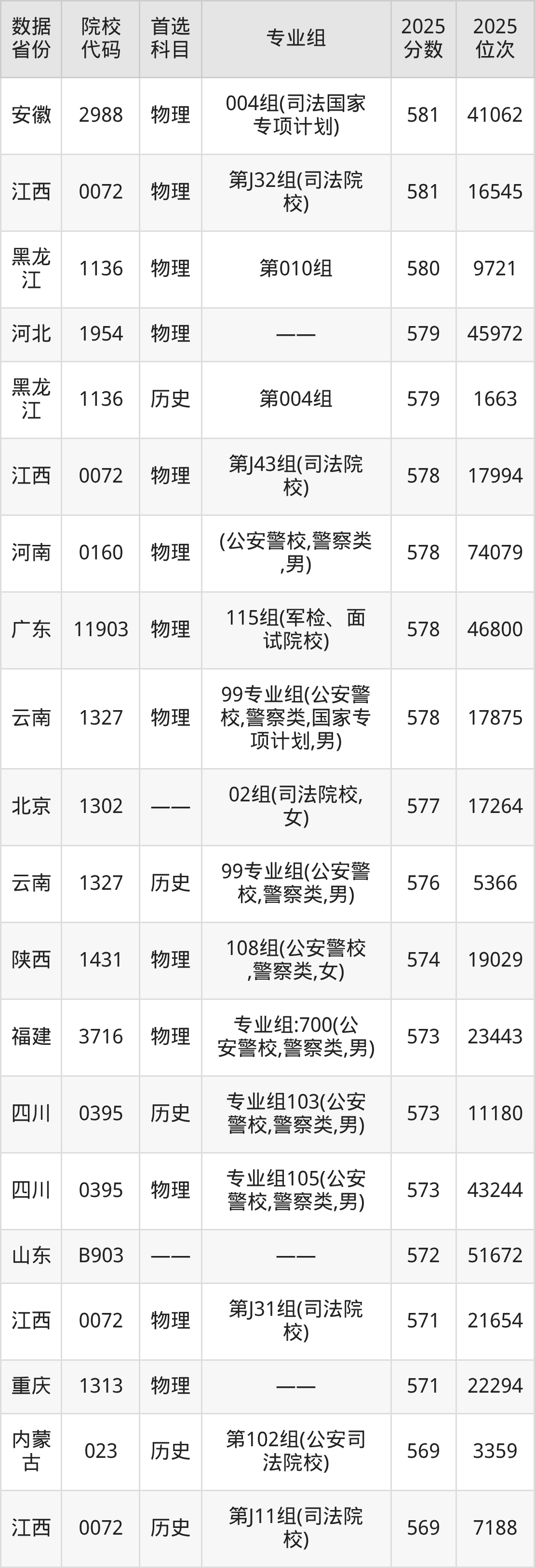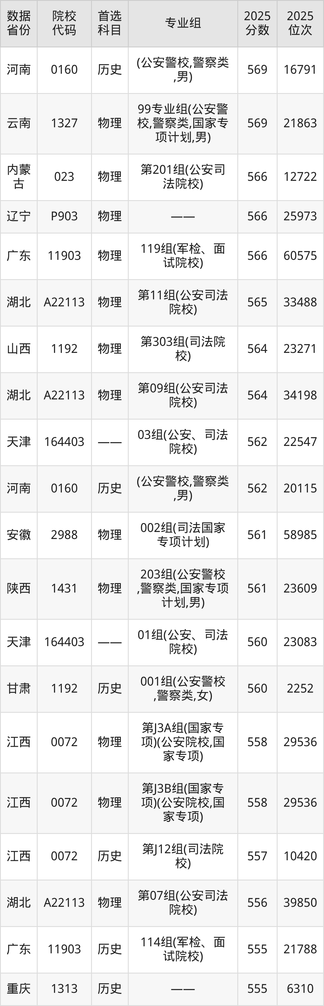 二、中央司法警官学院提前批次2025年录取分数线