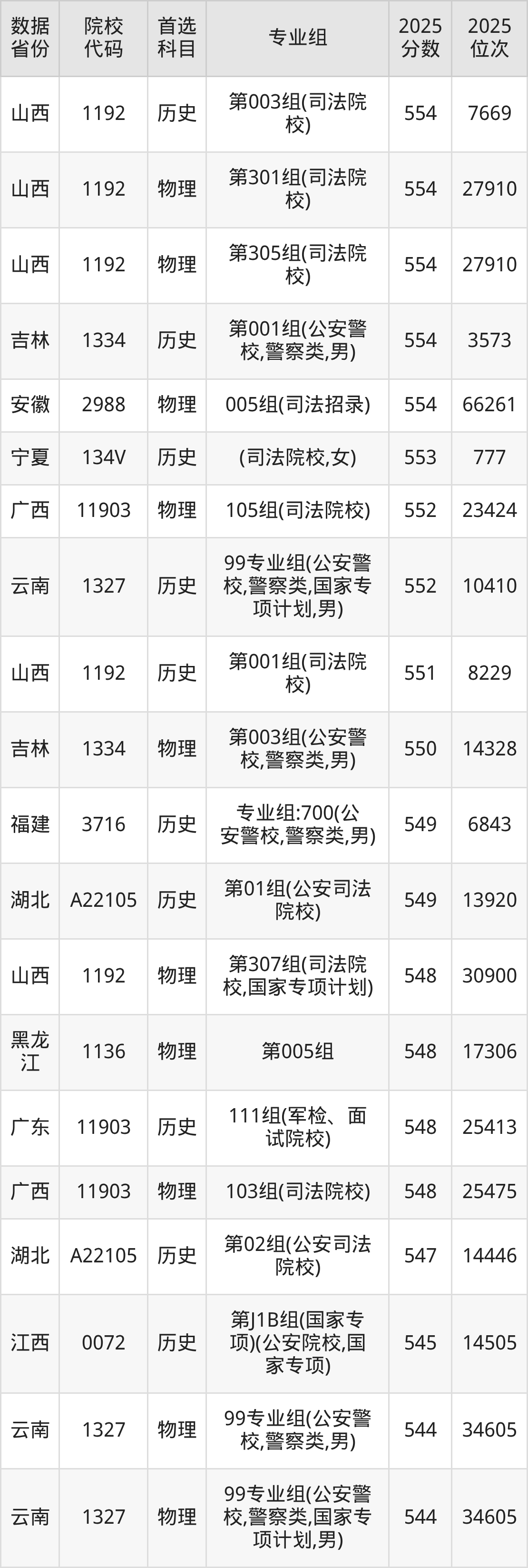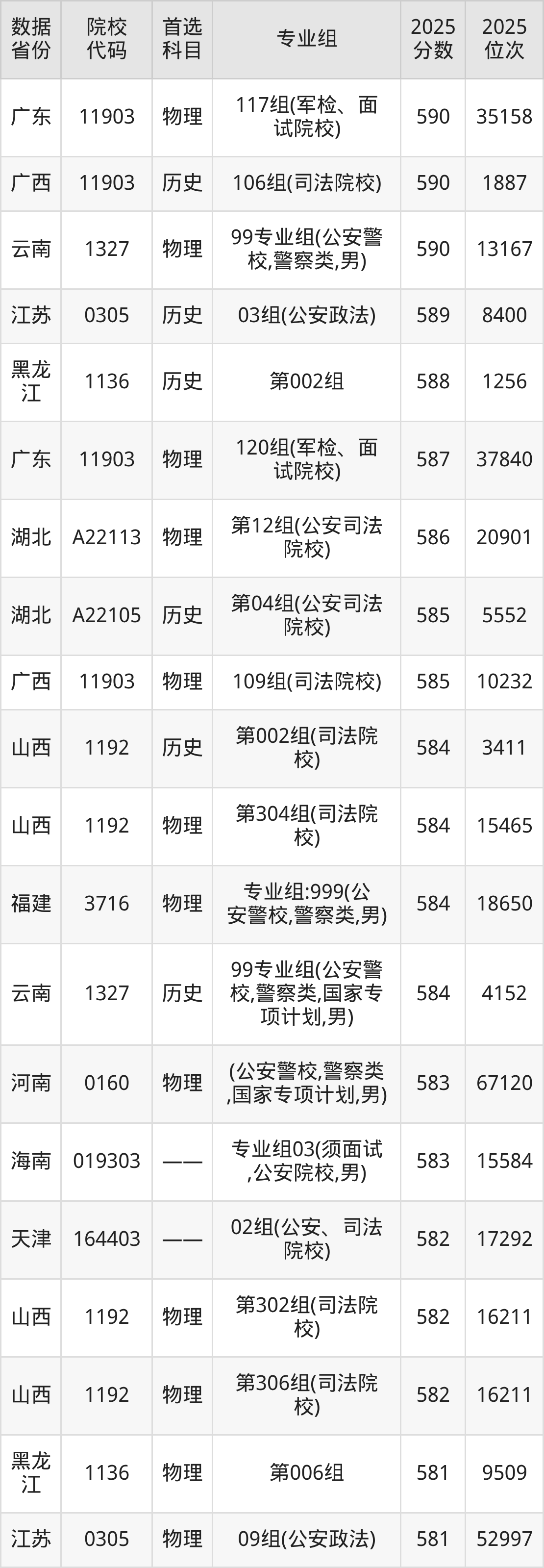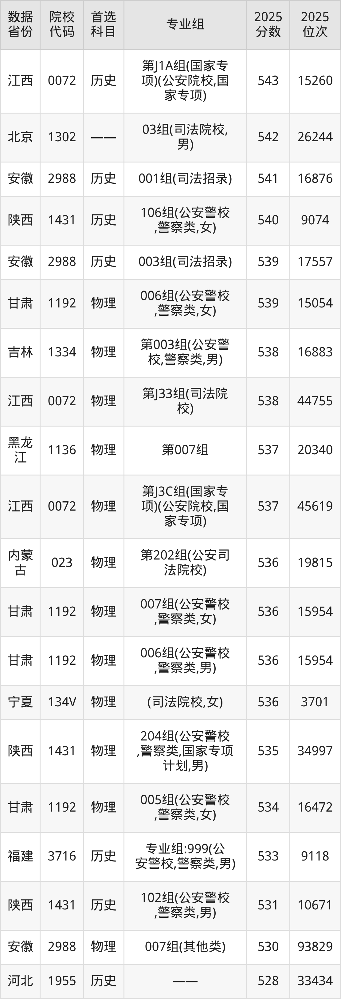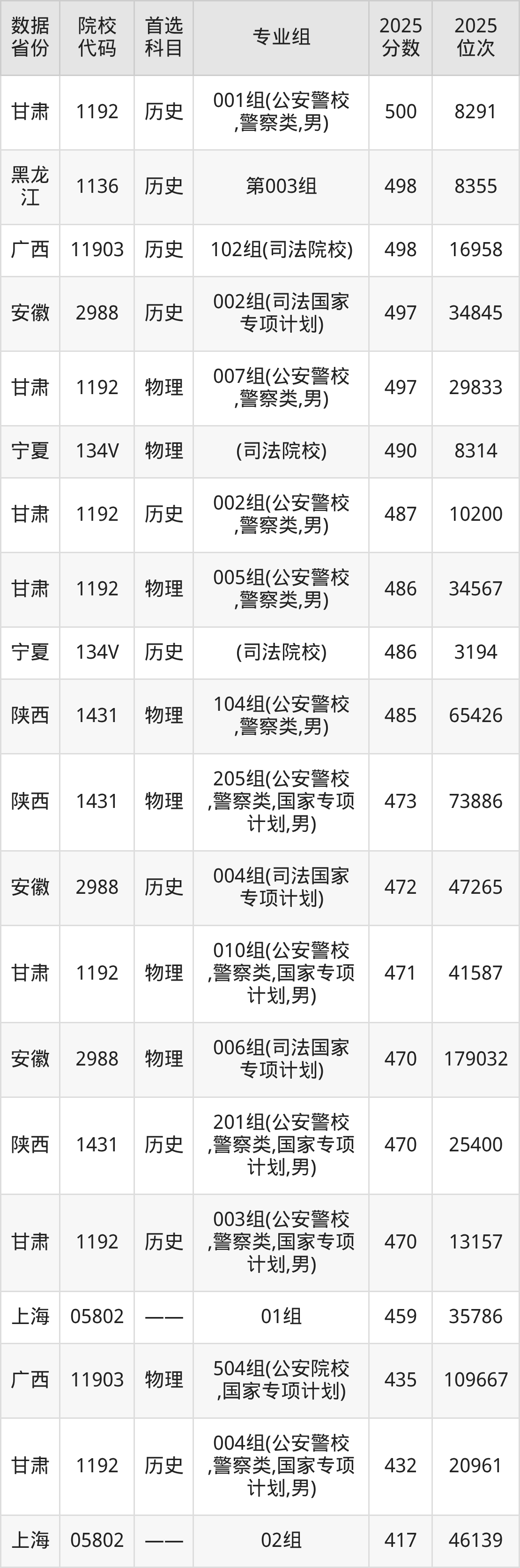 二、中央司法警官学院提前批次2025年录取分数线