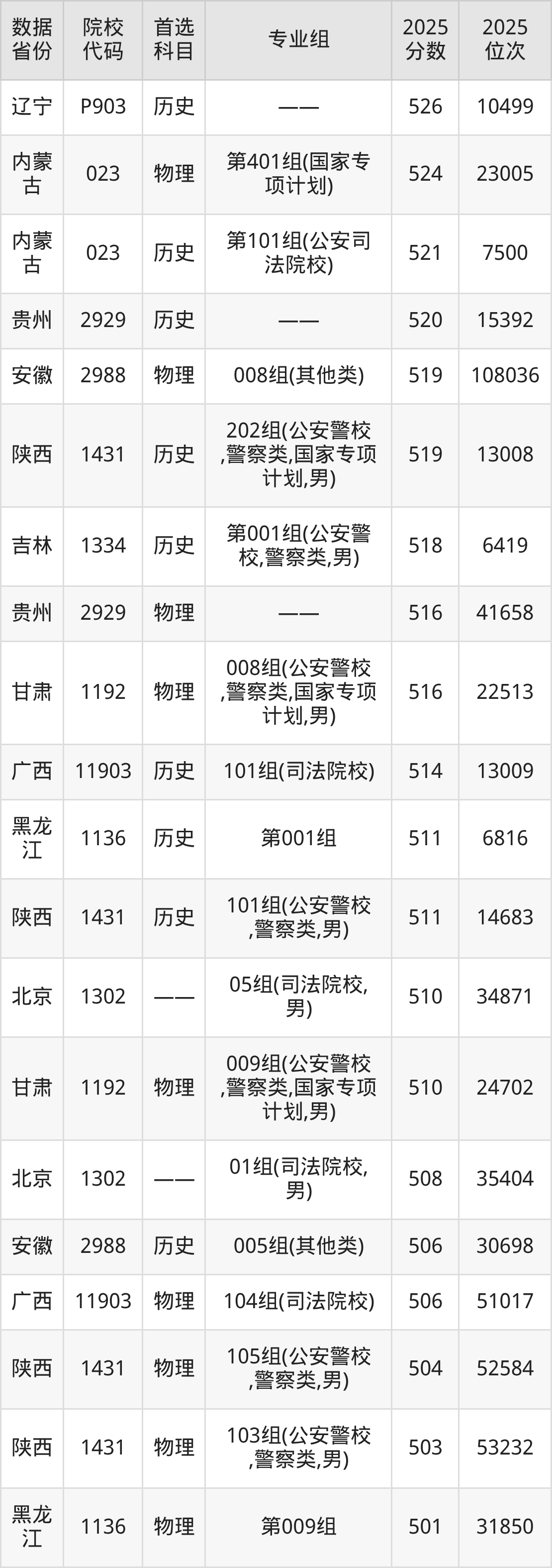 值得注意的是,部分省份因招生计划类型或生源情况,分数相对具有优势。例如,2025年在北京,本科提前批A段男生最低录取分为508分(位次35404);在山东,提前批A类警察类专业(男)最低分为502分。这为符合条件且分数在此区间的考生提供了重要机会。