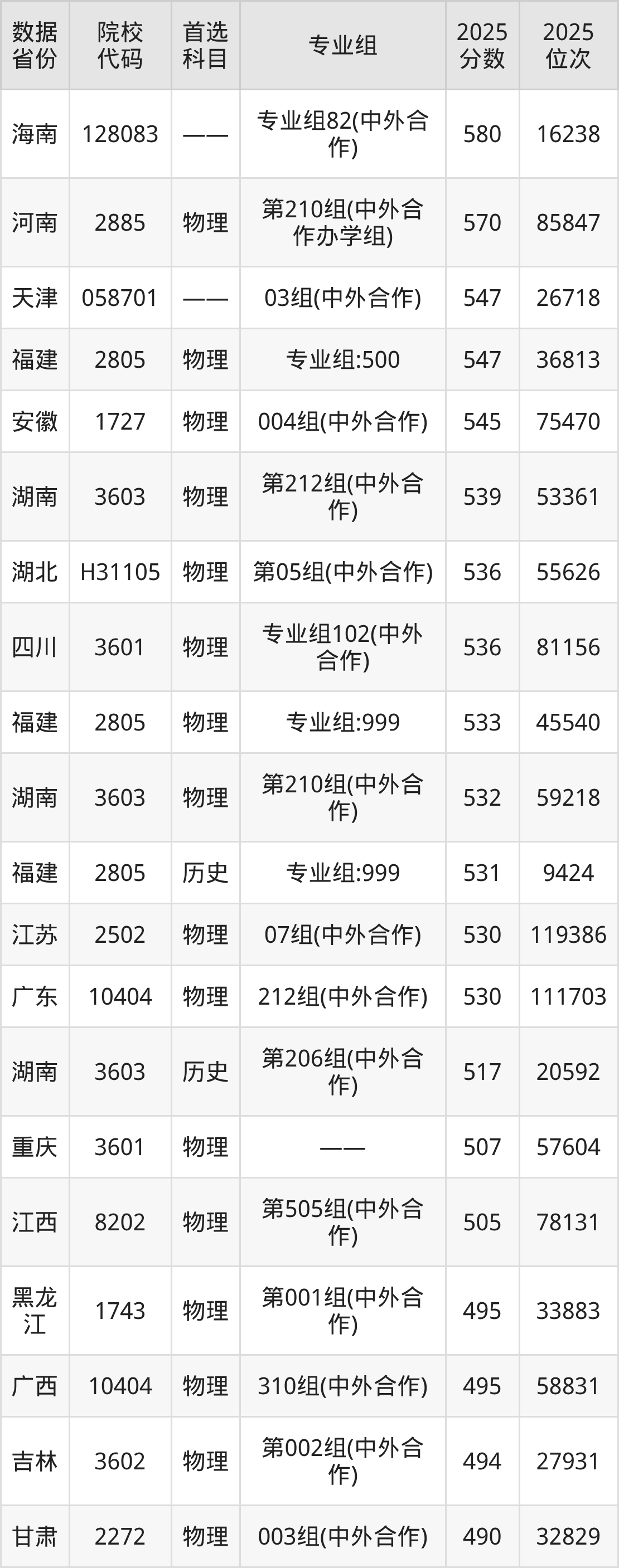 值得注意的是,同一省份内,不同中外合作办学专业之间的录取分也可能有细小差别。例如在山东,2025年软件工程和计算机科学与技术专业录取最低分为534分,而工程管理专业为509分。这提示考生在填报时,需结合专业热度与自身分数进行综合考量。