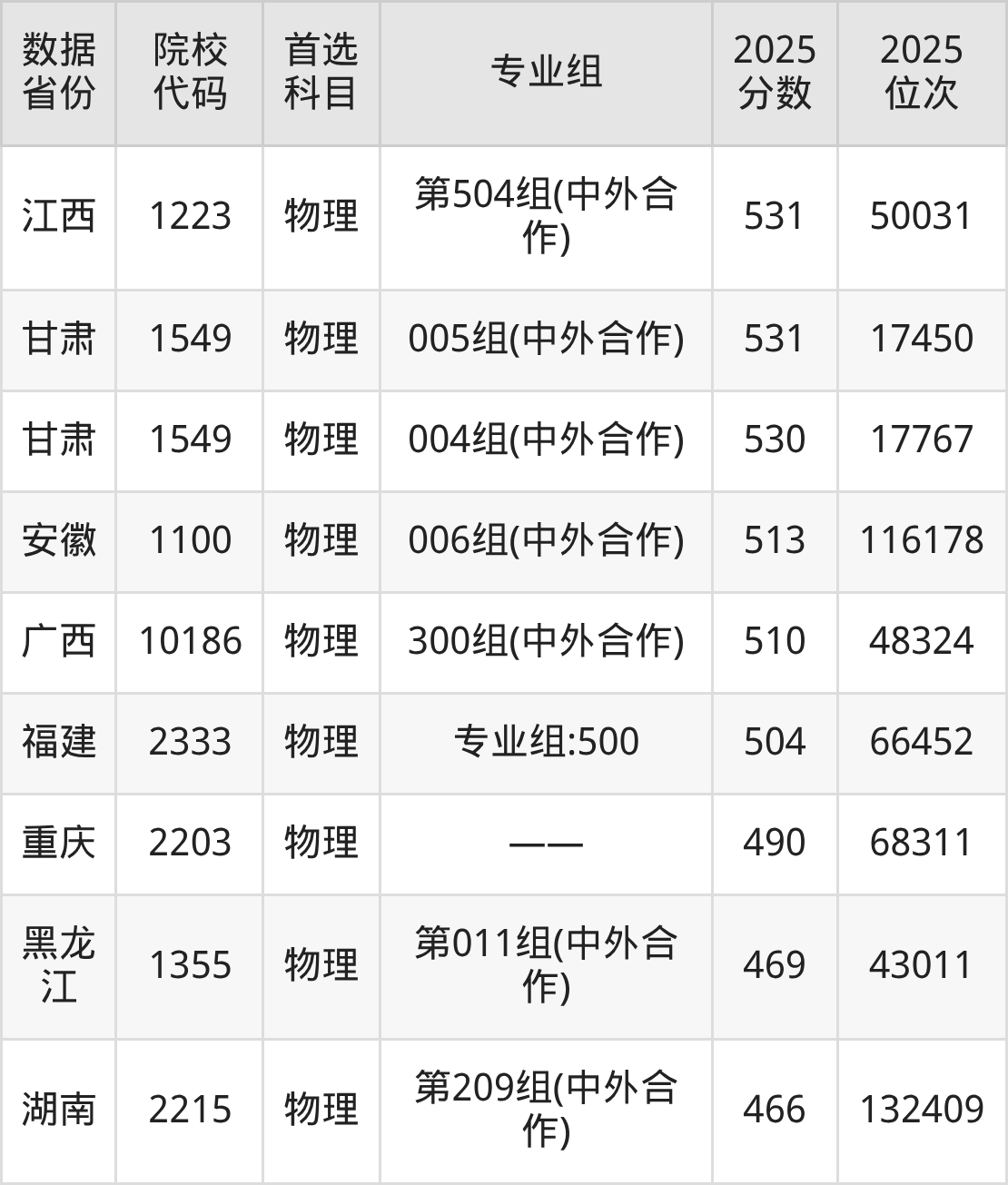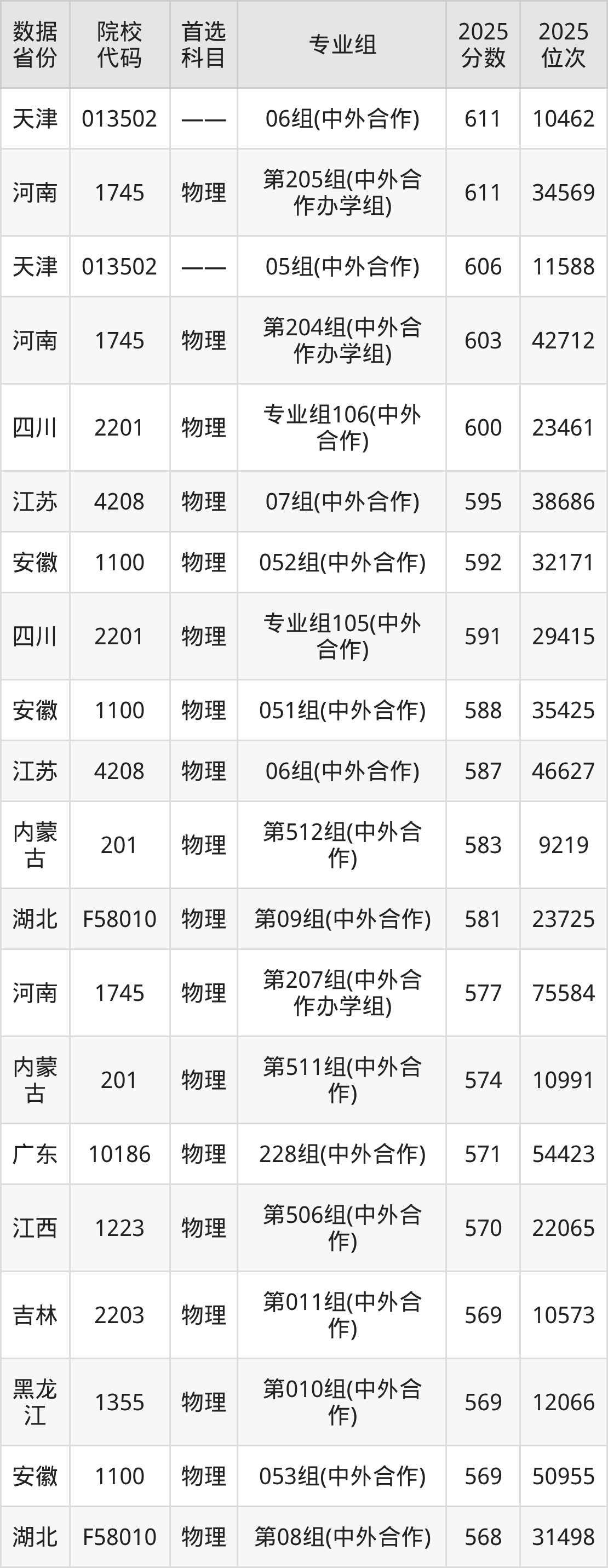 分析2025年的录取数据,可以为2026届考生提供清晰的定位参考。当年,学校中外合作办学专业在全国各省的录取最低分分布在466分至611分之间,差异较大,体现了不同省份的生源情况和竞争热度。