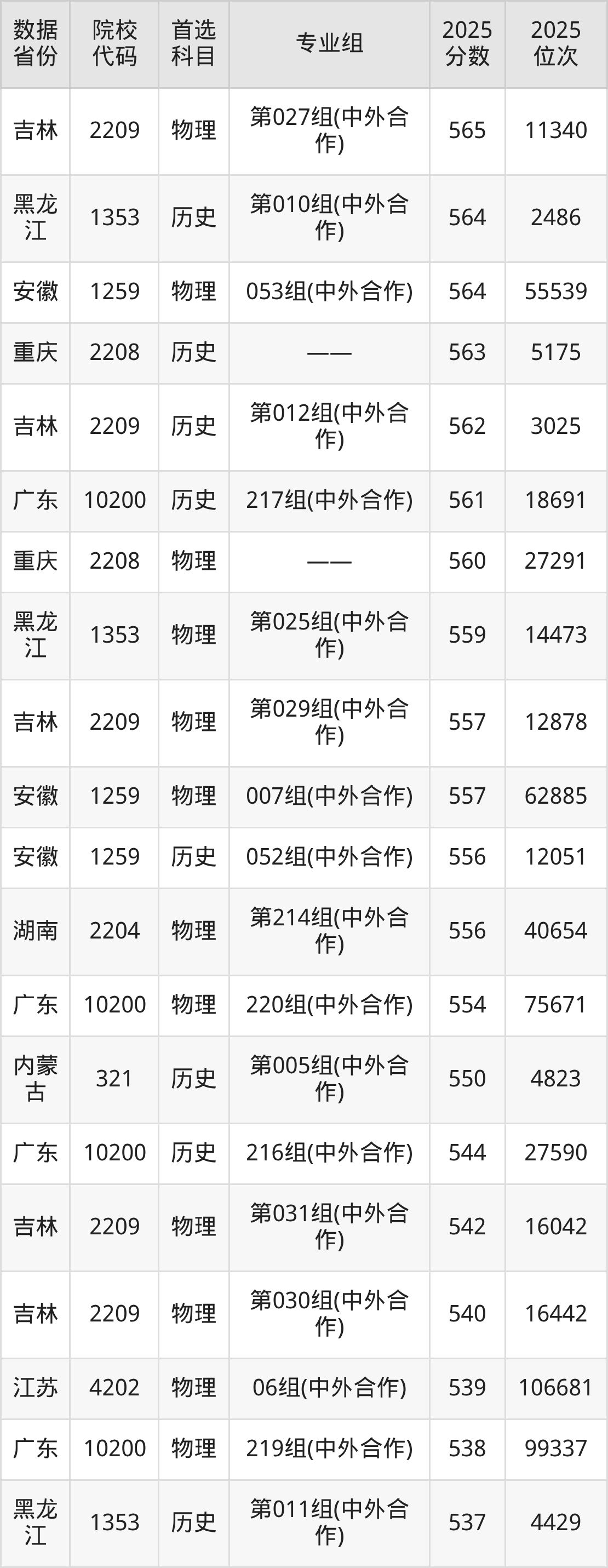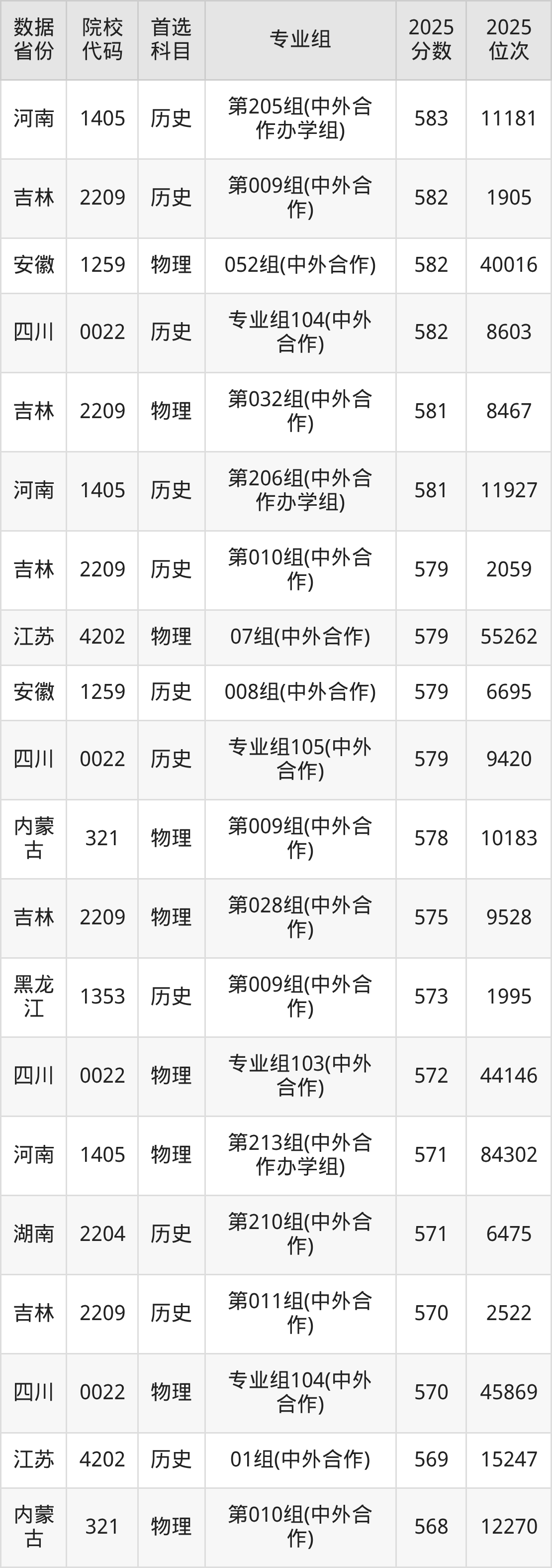 二、东北师范大学中外合作办学2025年录取分数线