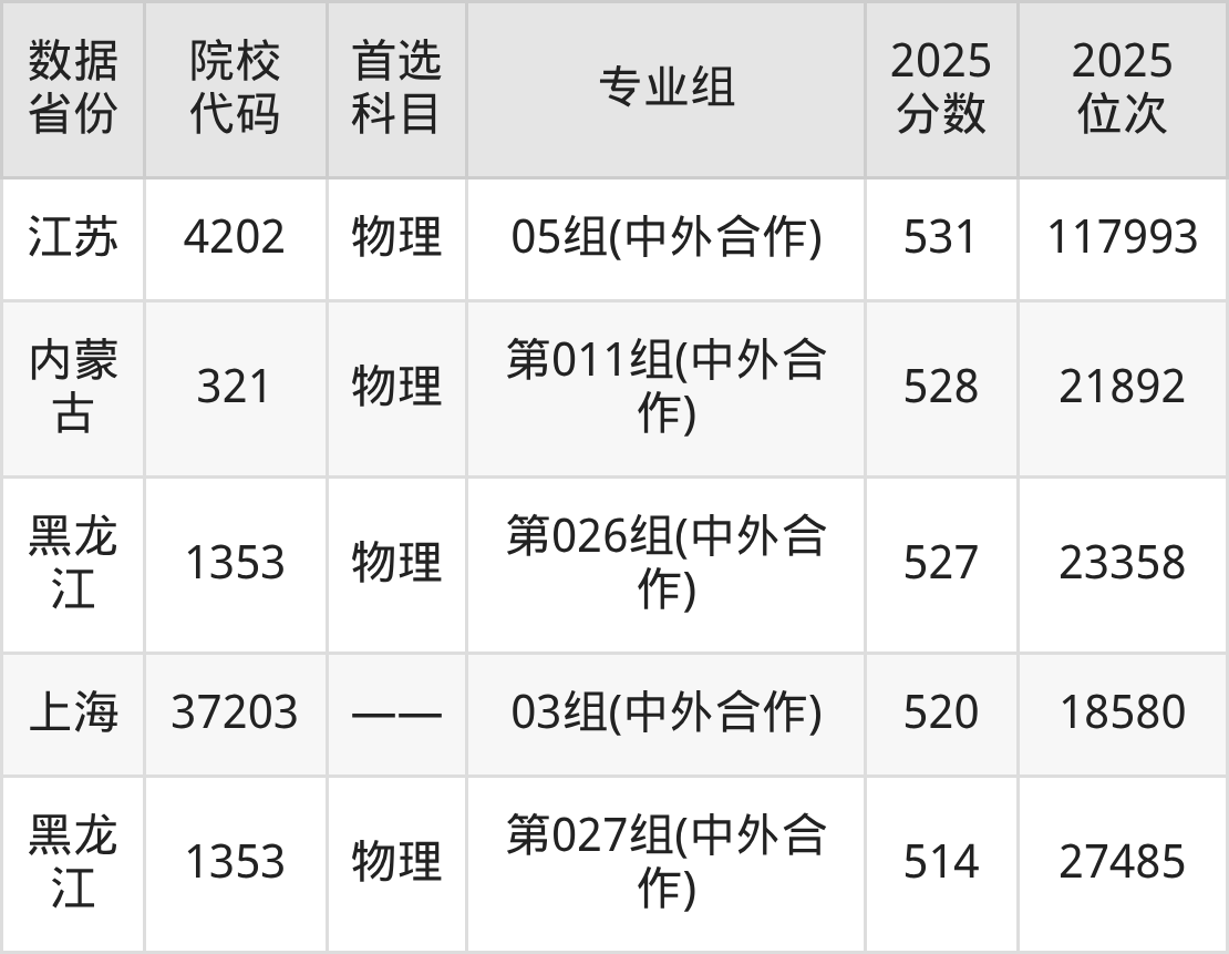 在部分省份,该项目提供了更具性价比的选择。例如在黑龙江,历史类中外合作办学专业最低录取分曾至537分,物理类最低至514分。在重庆,物理类和历史类的最低录取分数线分别为560分和563分。这些数据为不同分数段的考生提供了重要的定位参考。