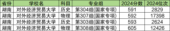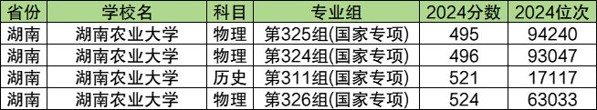 三、2024年湖南国家专项计划录取分数线