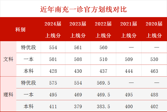 历年南充一诊分数划线对比图如下: