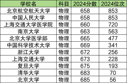 为了方便同学们参考,本文在此整理了位次在1000、10000以及40000左右物理类的部分院校,具体如下: