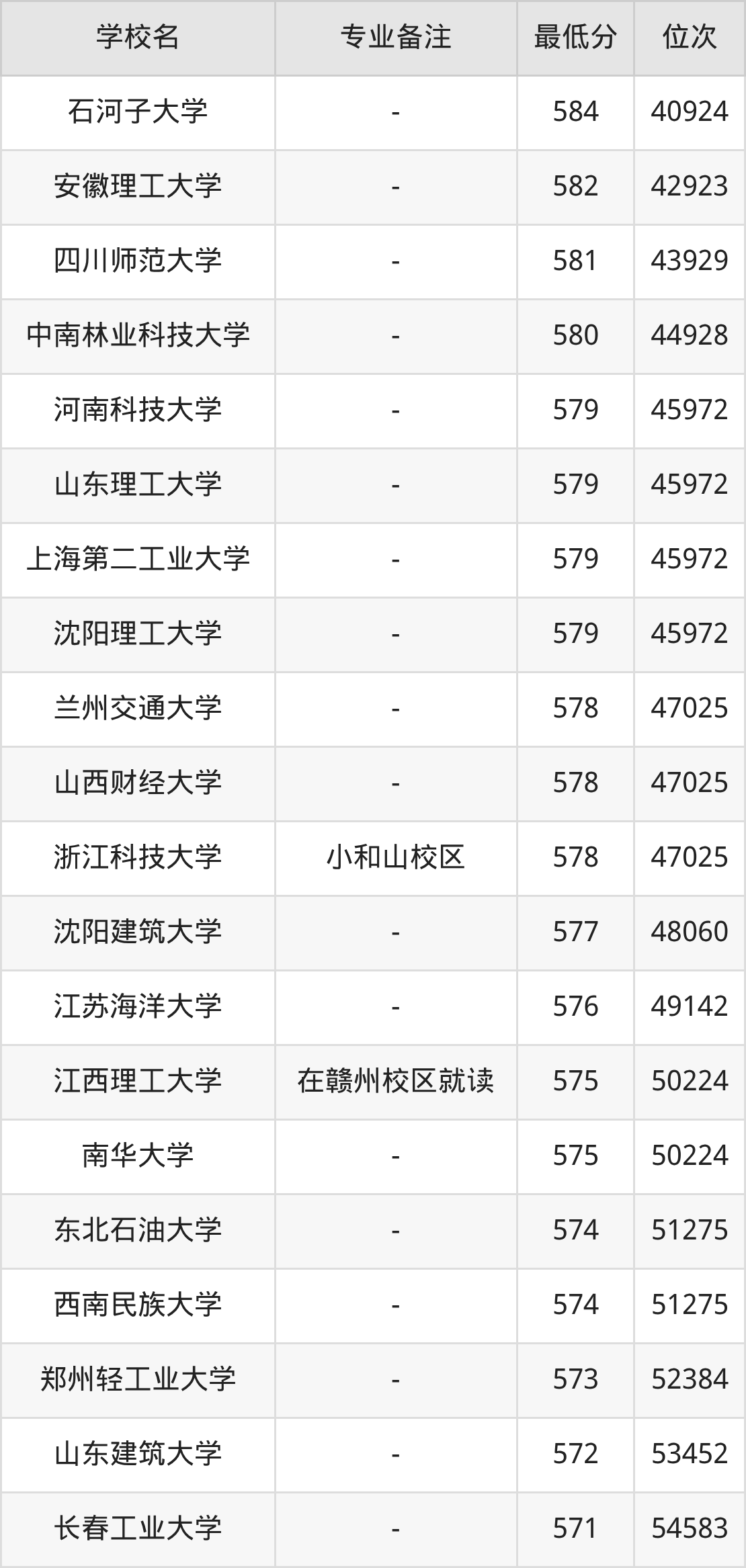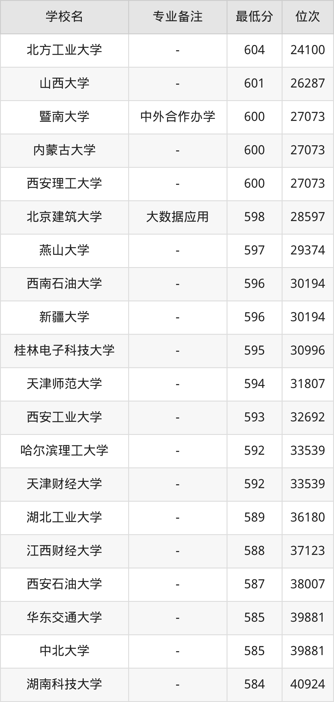 信息与计算科学专业录取分数线最低的公办本科大学则是新疆理工学院,2025年分数线为501分,与录取分数线最高的南京航空航天大学相差143分。