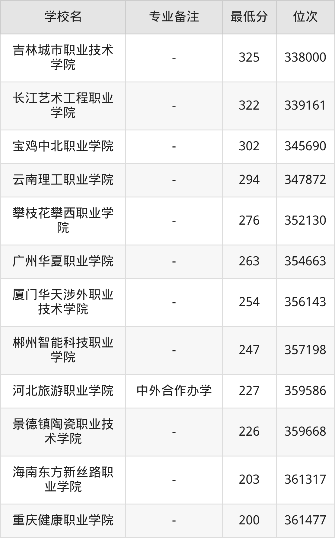 数字媒体艺术设计专业录取分数线最低的专科大学是重庆健康职业学院,2025年分数线为200分,刚好为河北物理类专科批次线的分数。