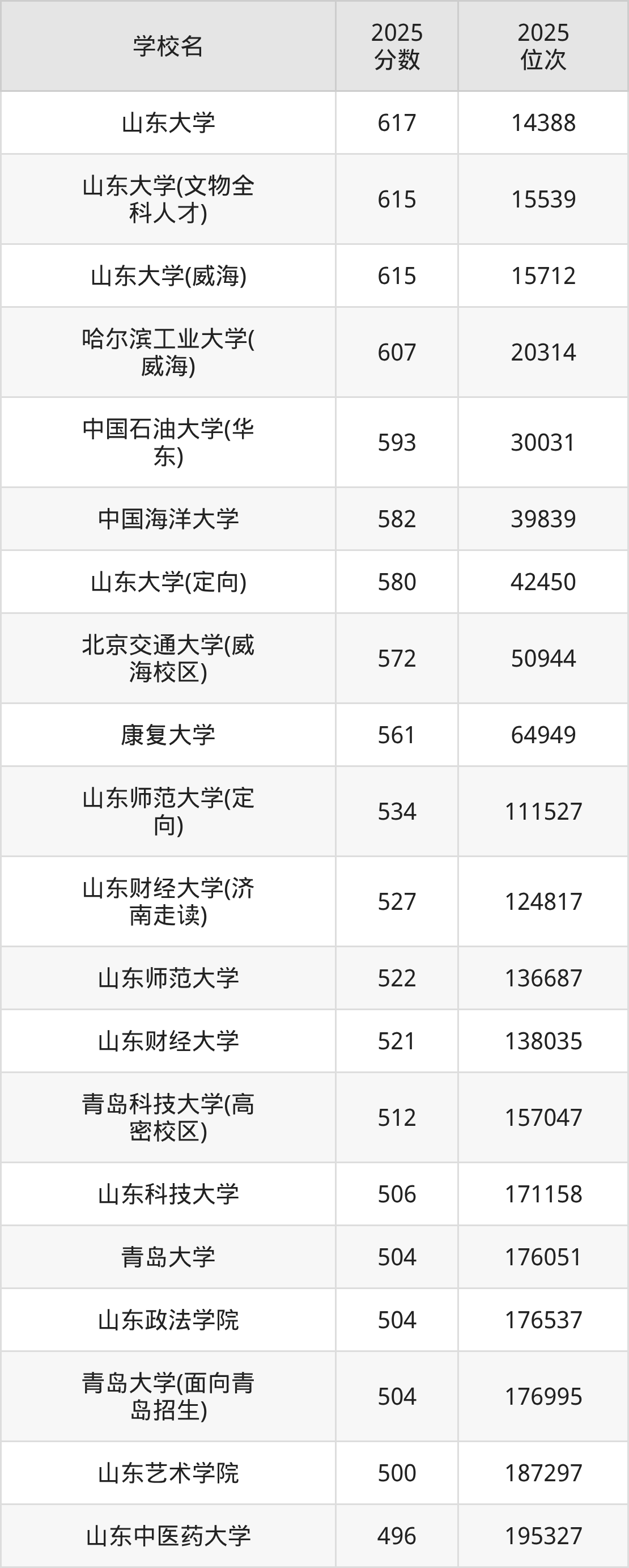 二、山东公办本科大学录取分数线