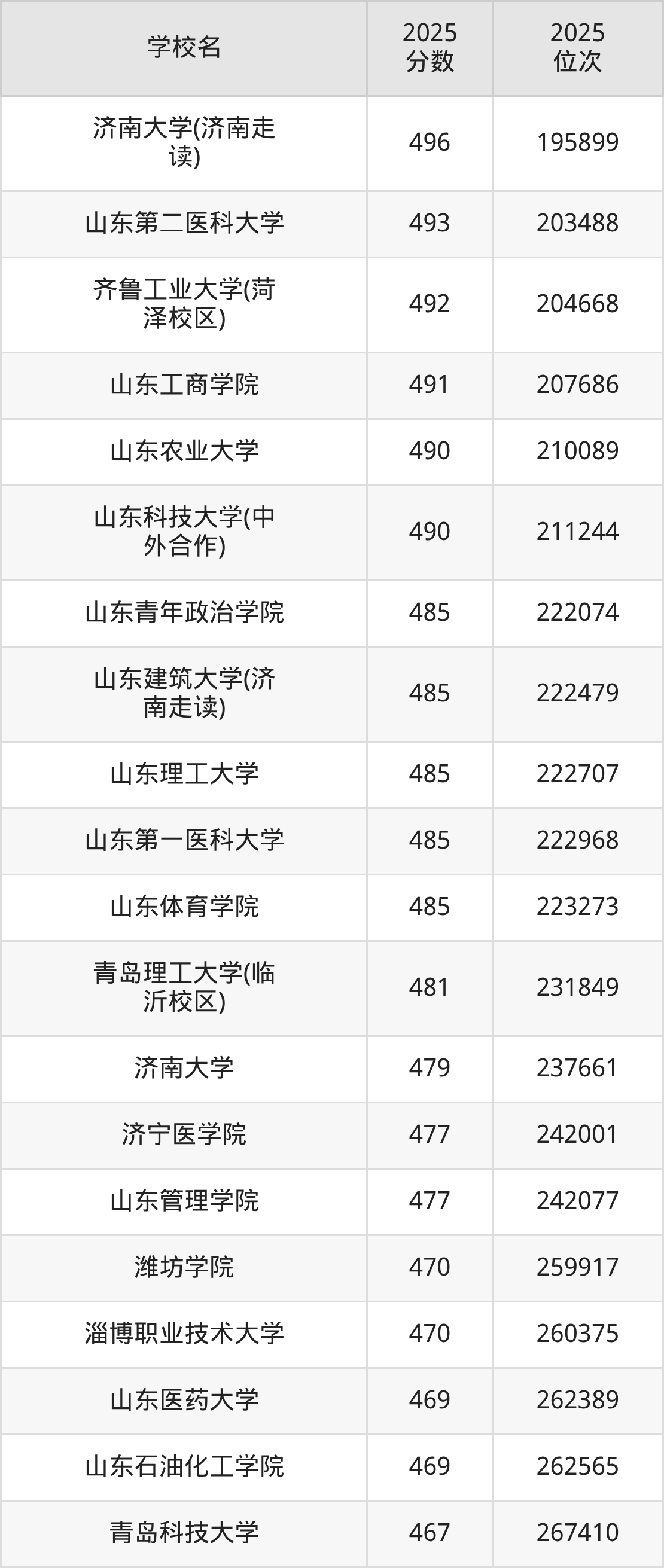 | 山东管理学院 | 481 |