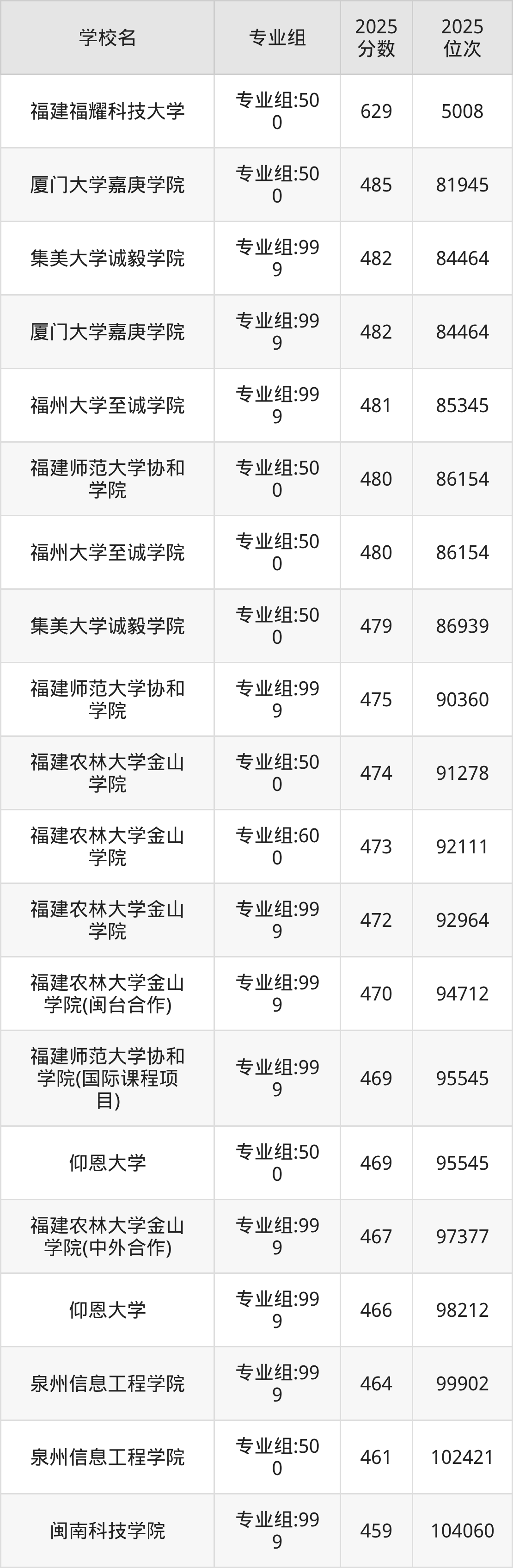 福建农林大学金山学院:459分到470分,最低分为专业组:999、最高分为专业组:999;