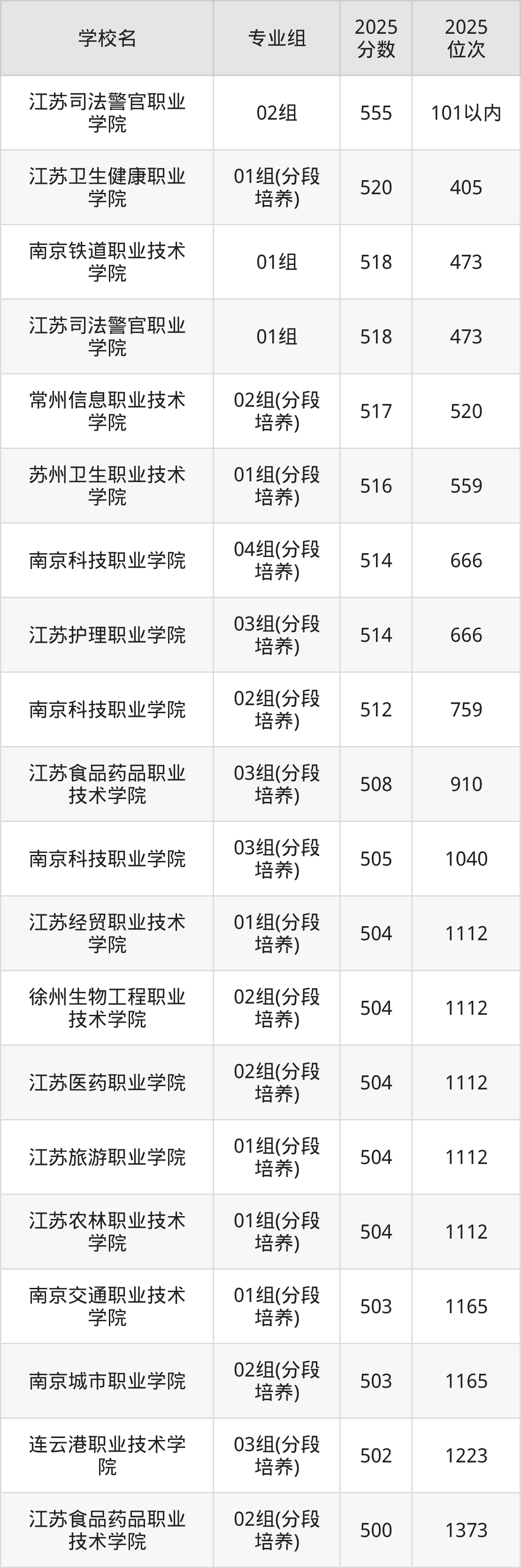 江苏司法警官职业学院:402分到537分,最低分为06组、最高分为05组;