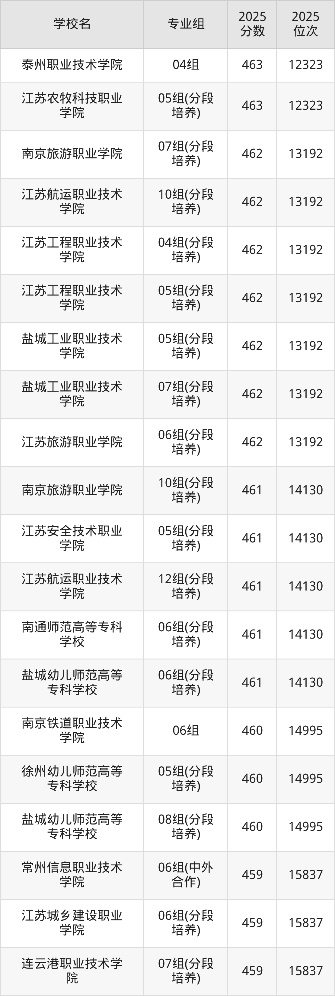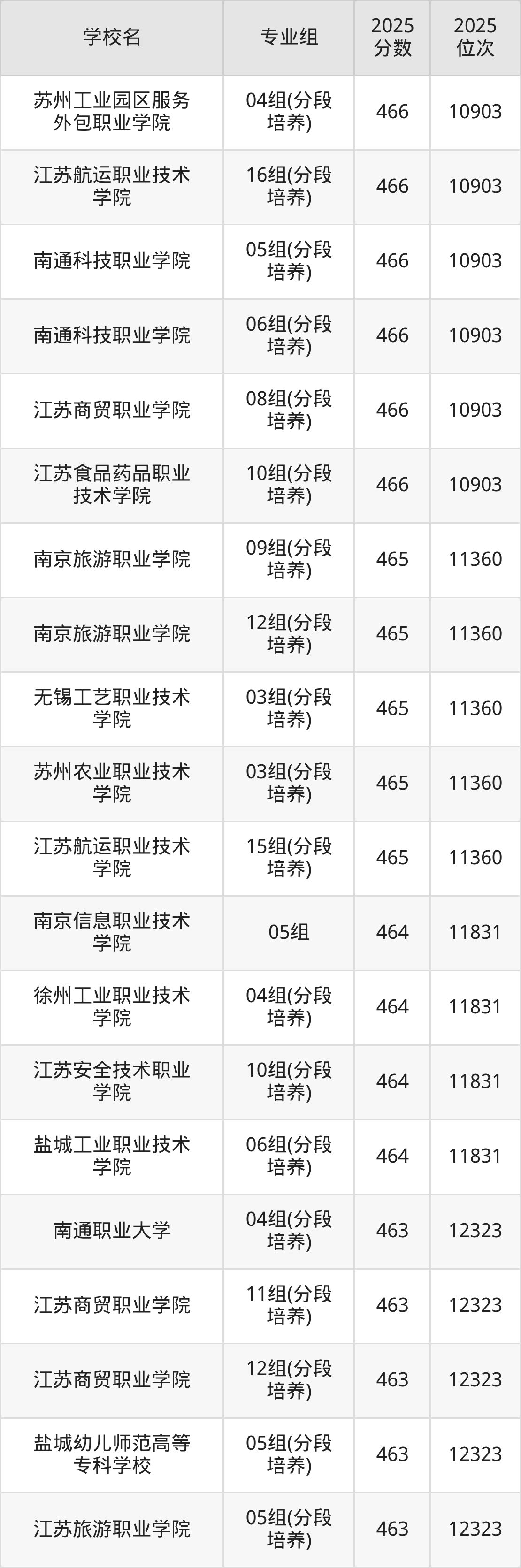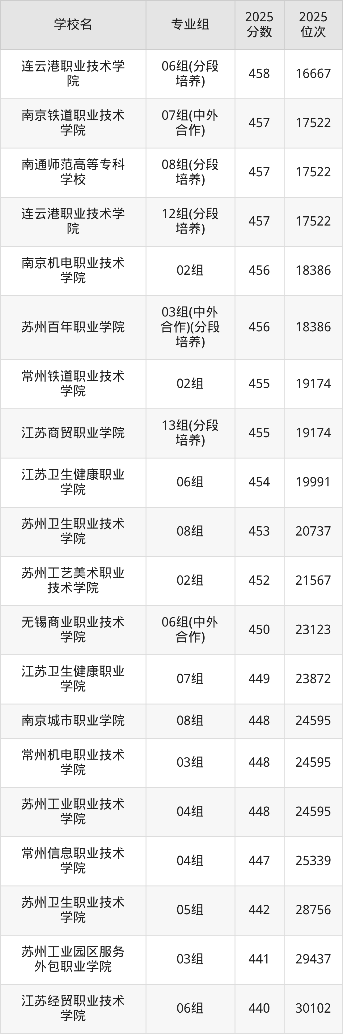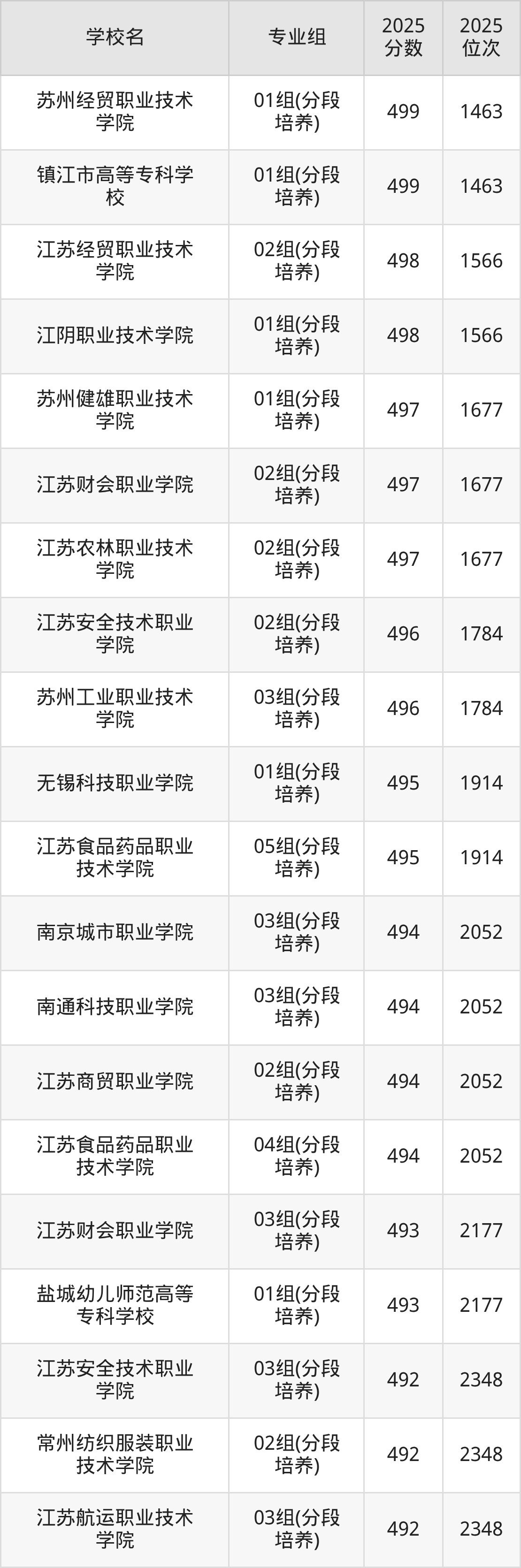 江苏信息职业技术学院:426分到496分,最低分为05组、最高分为04组(分段培养);