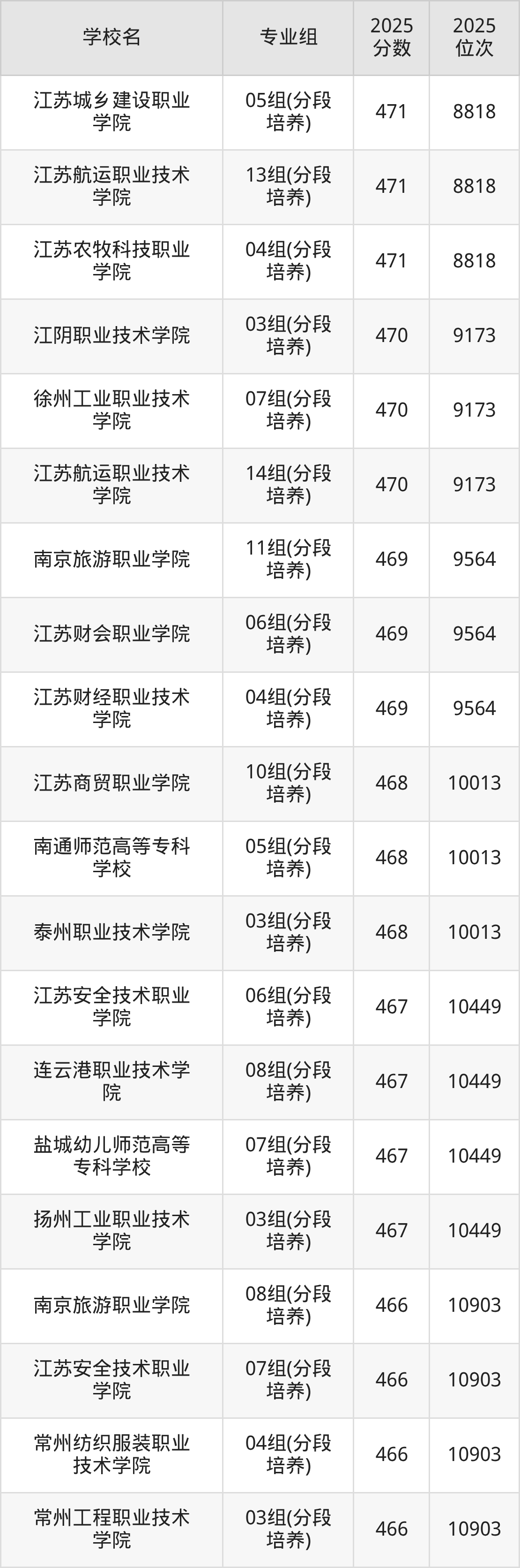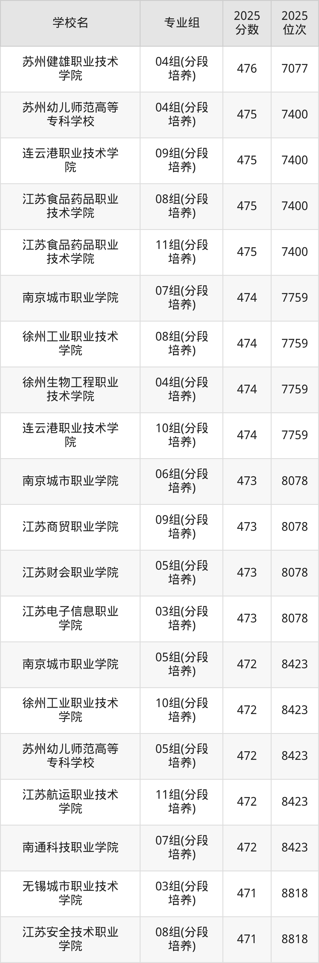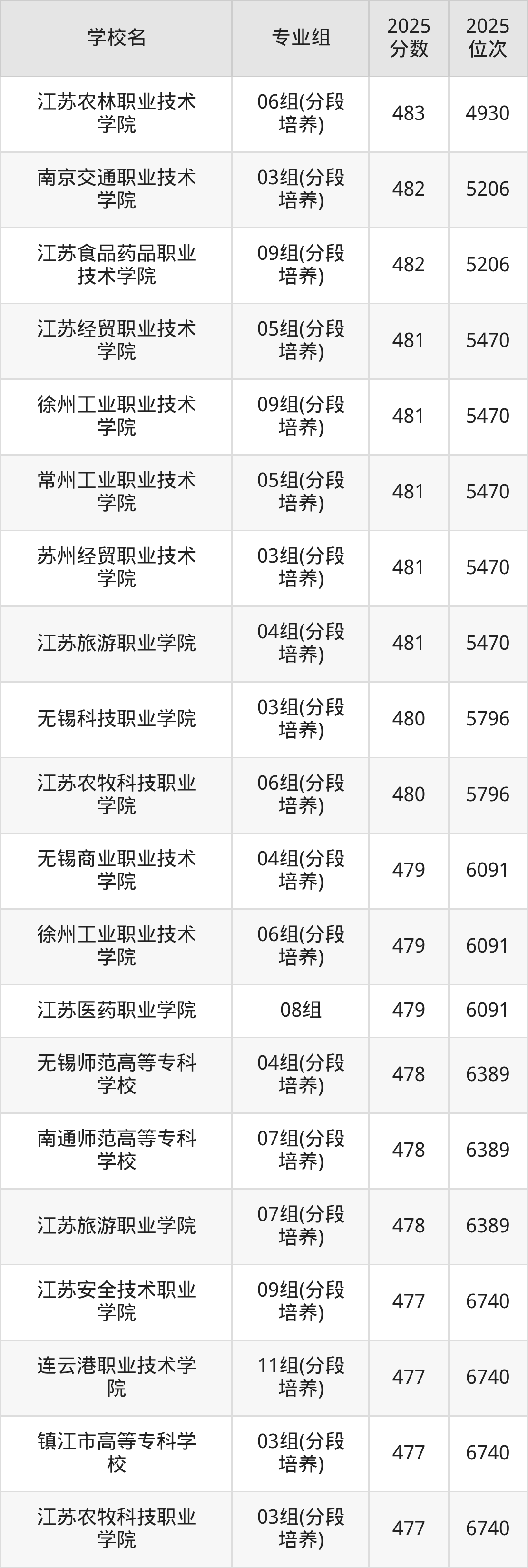常州信息职业技术学院:447分到502分,最低分为04组、最高分为05组(分段培养);