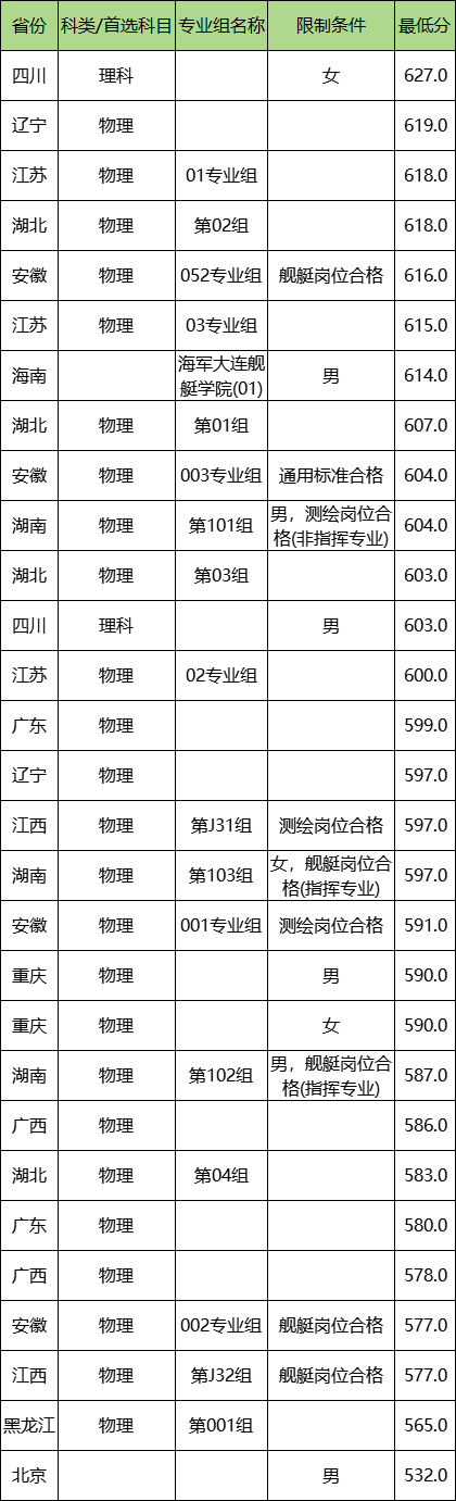 三、海军大连舰艇学院2024录取分数线