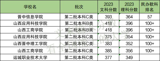 2023年在山西文科本科二批C类最低393分、理科本科二批C类最低364分。