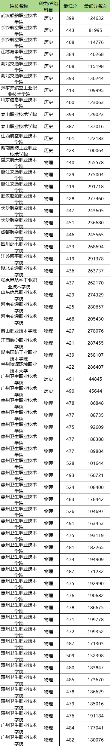 在物理类方面,报考难度最大的是南京信息职业技术学院(051专业组),录取线是563分。职业技术学校的最低分270,对应的院校有1所,包含上海民航职业技术学院(001专业组)。