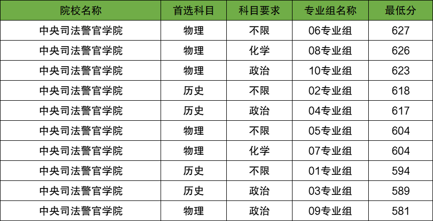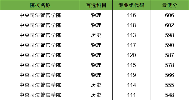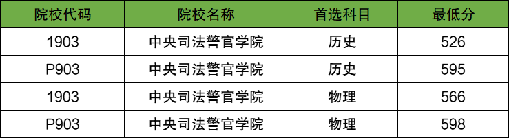 中央司法警官学院历史类最低分526分、物理类最低分566分。