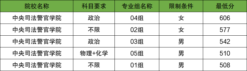 | 中央司法警官学院 | 司法院校 | 男 | 555 |
