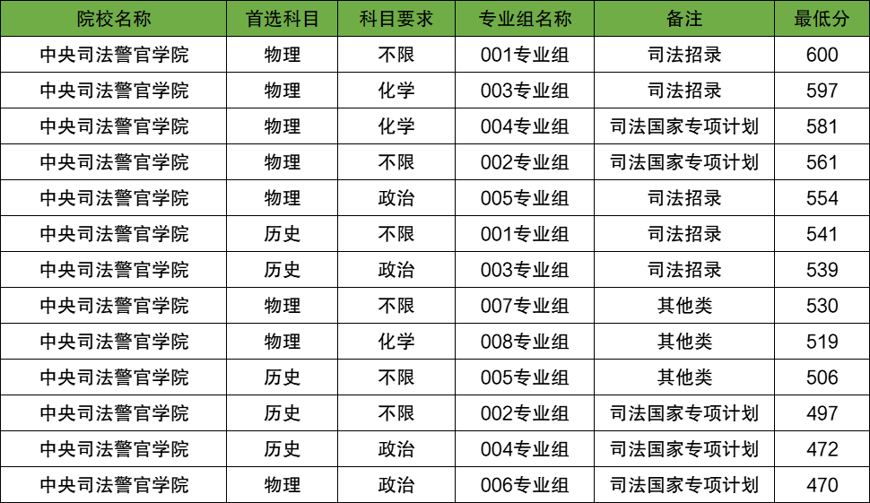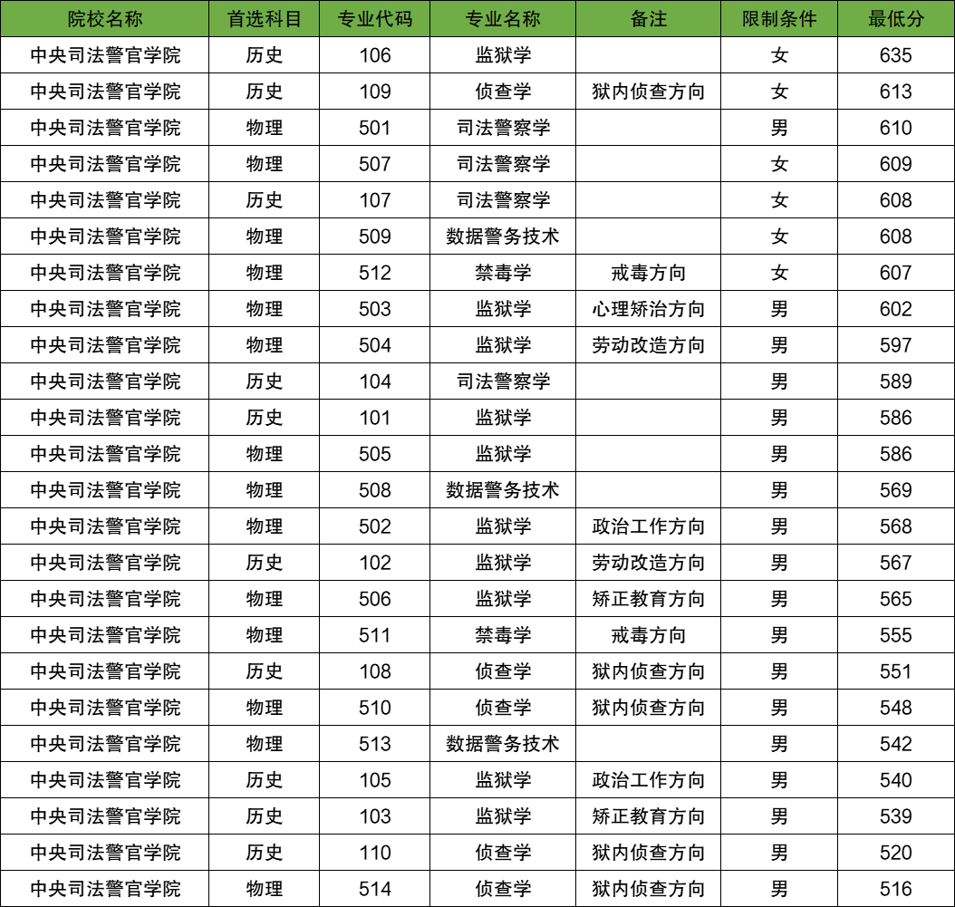 | 中央司法警官学院 | 国家专项 | 男 | 573 |