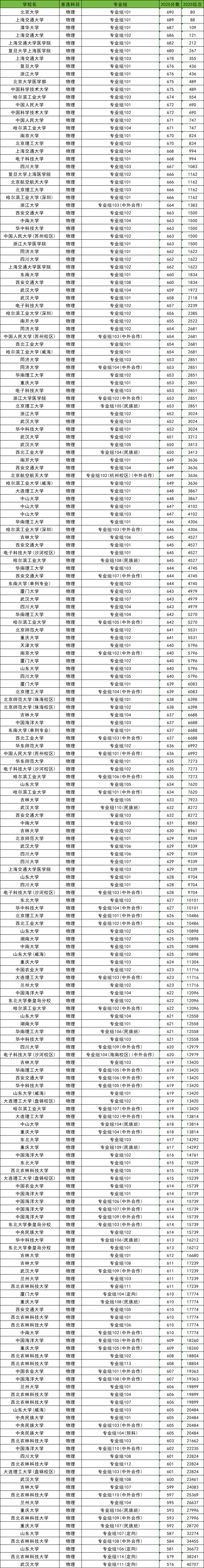 下面是985大学中物理类录取分数线最高的10所大学分数及位次详情: