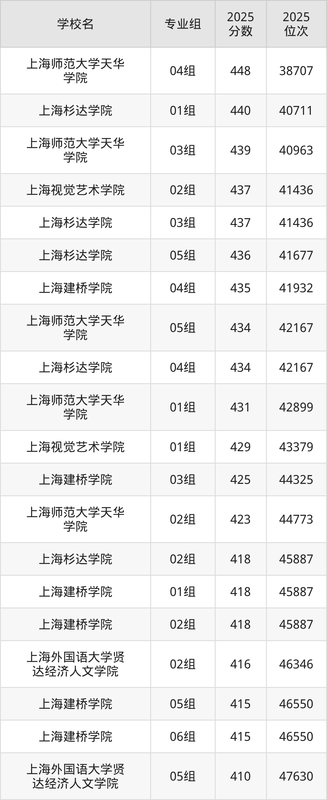 本文均只整理出上海市内民办二本大学的最低分排名,供参考。