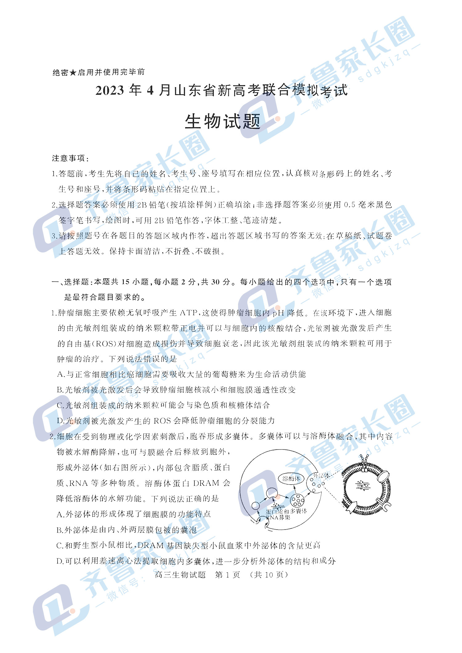 济南二模2023是济南是较为重要的考试,济南2023高三二模安排在4月19日举行,在济南二模2023结束之后,本期将整理济南二模2023生物真题及参考答案,希望同学们通过济南二模2023的试题答案,及时知晓生物成绩!