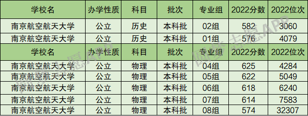 根据上图可知,南京航空航天大学2022年在江苏省历史类的最低分数线为576分,物理类的最低分数线为574分。