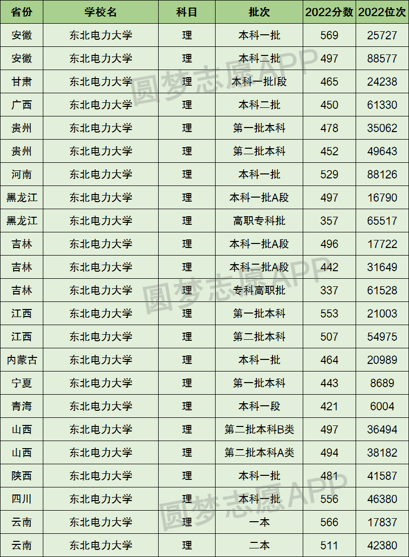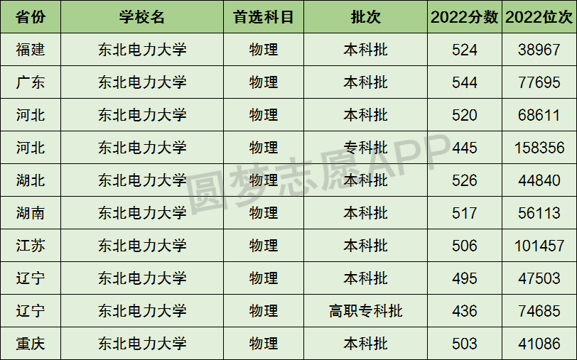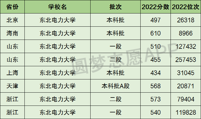 下面圆梦志愿将为大家展示东北电力大学2022年在全国各省市的最低分数线和位次,大家可以在了解东北电力大学在全国各省详细招生批次的同时,也顺便看看东北电力大学的招生录取分数线是多少!