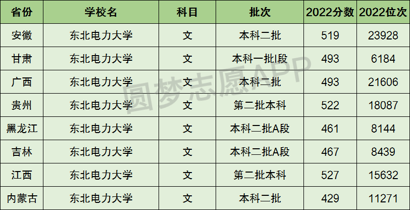 1、东北电力大学在全国普通高考省份的【文科】招录数据,包含招生批次等信息: