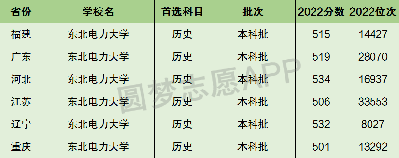 4、东北电力大学在3+1+2新高考省份【首选历史】的招录数据,招生批次为本科批: