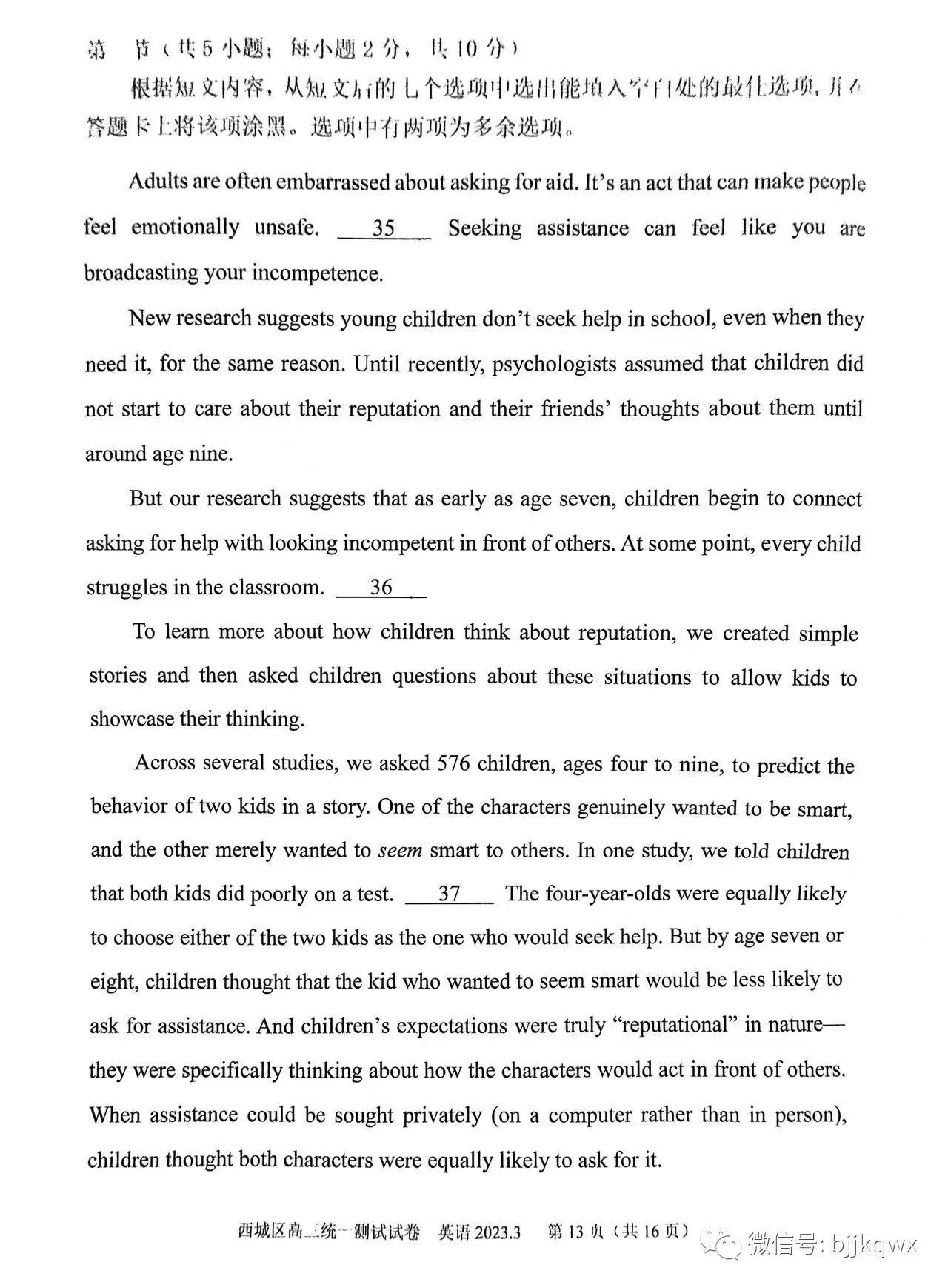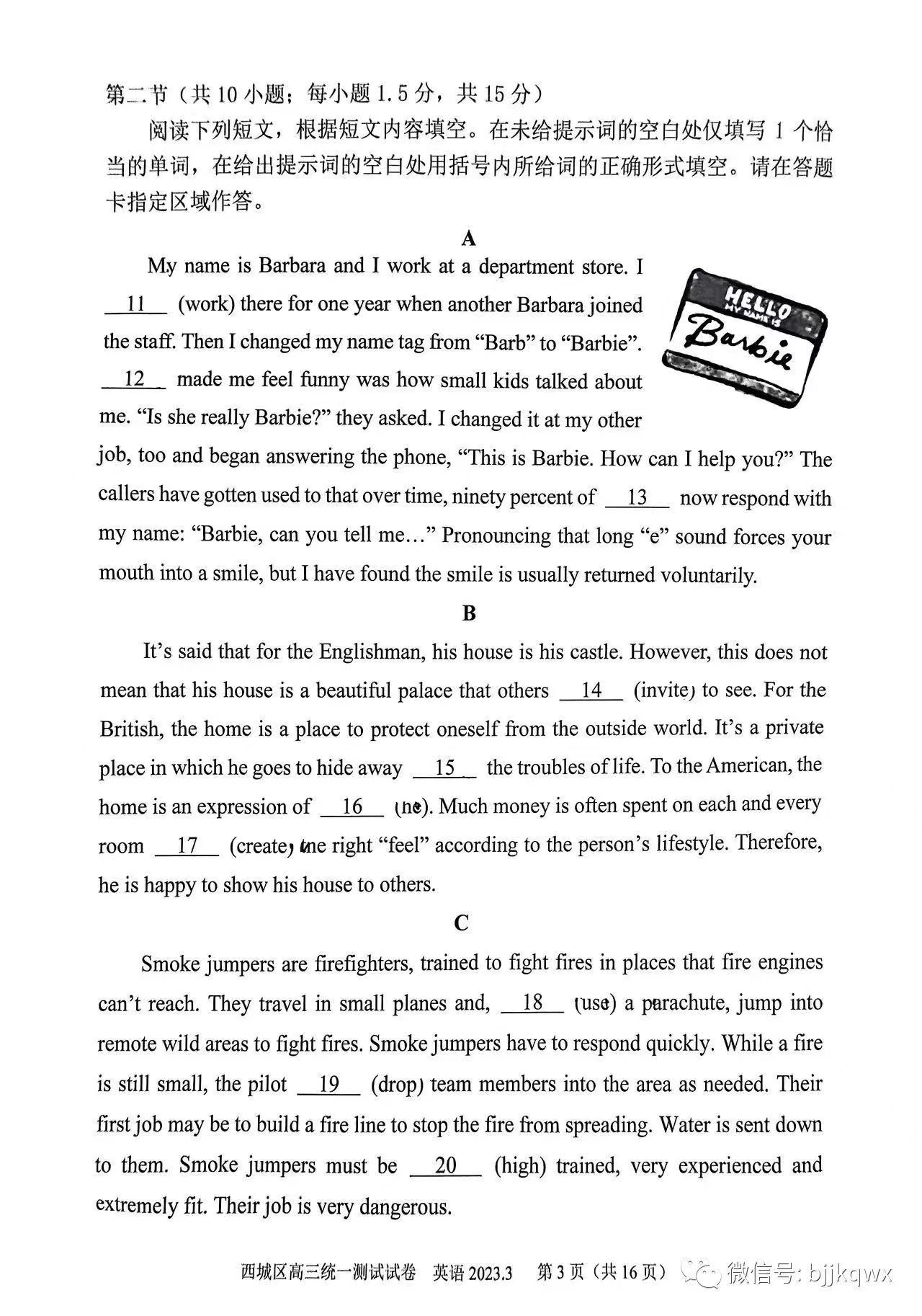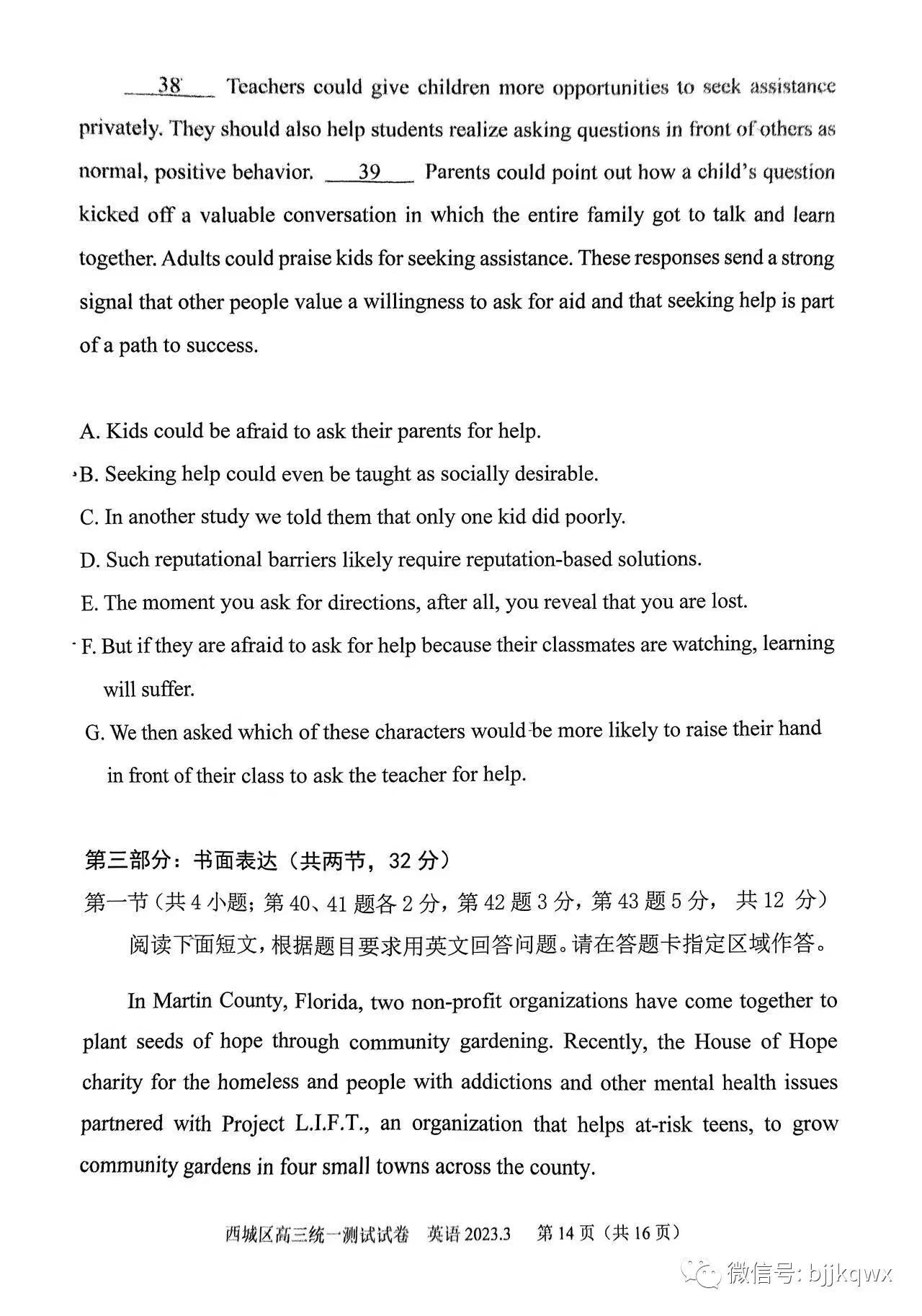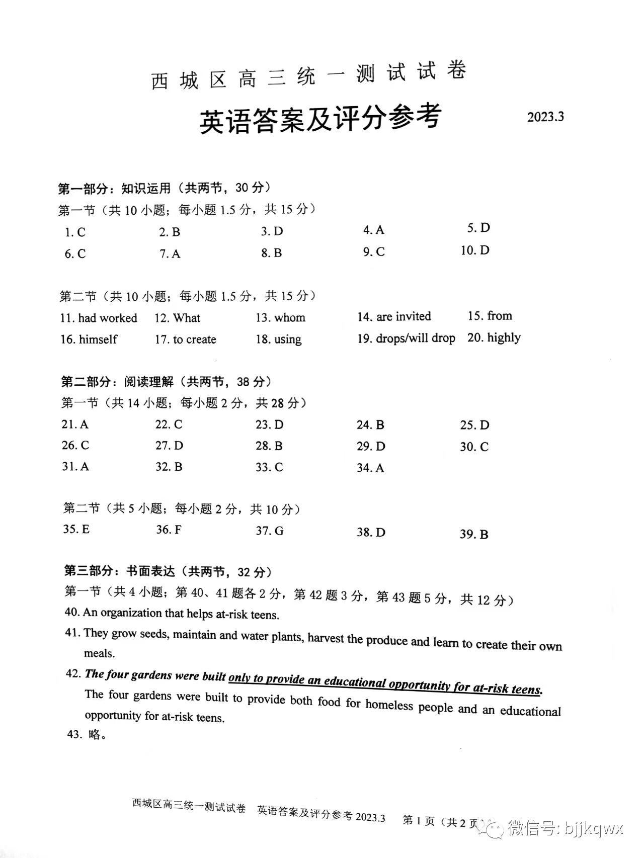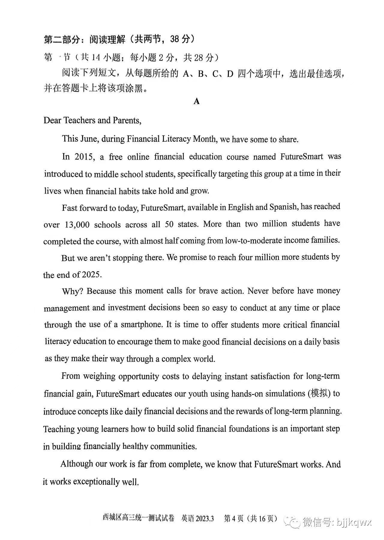 三、2023北京西城区高三一模英语答案及试题