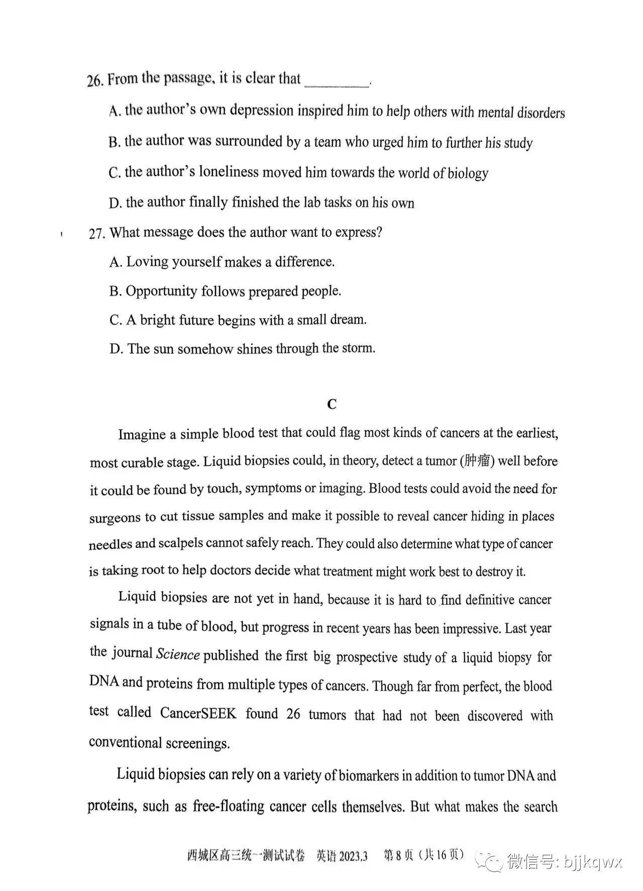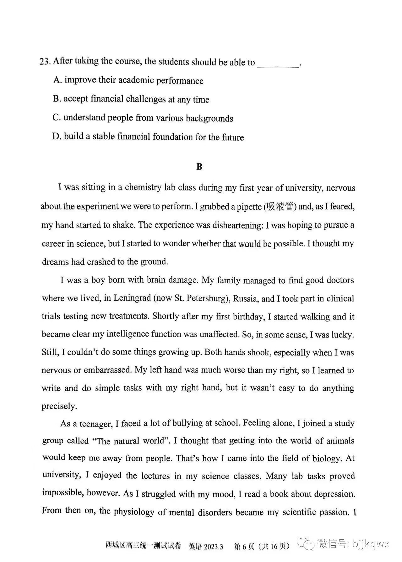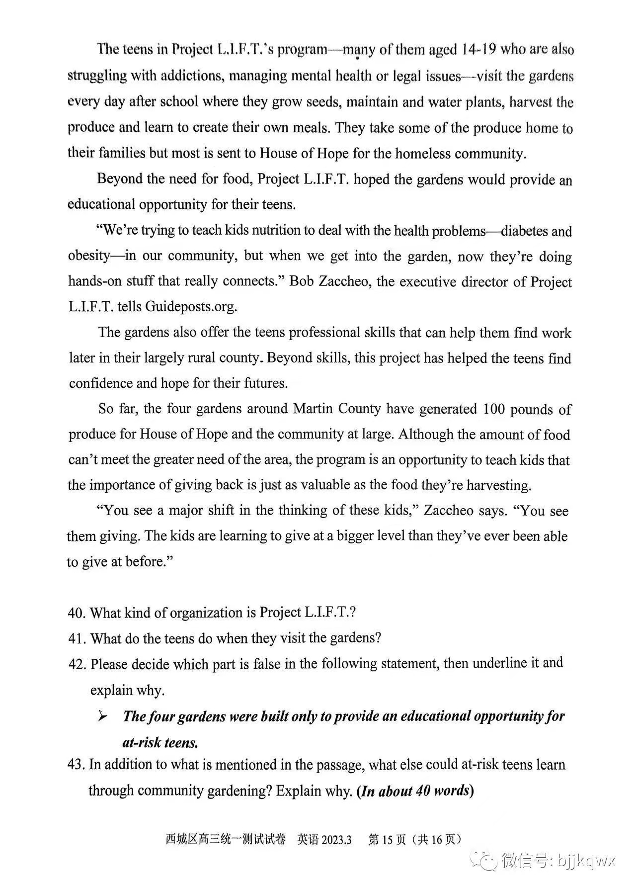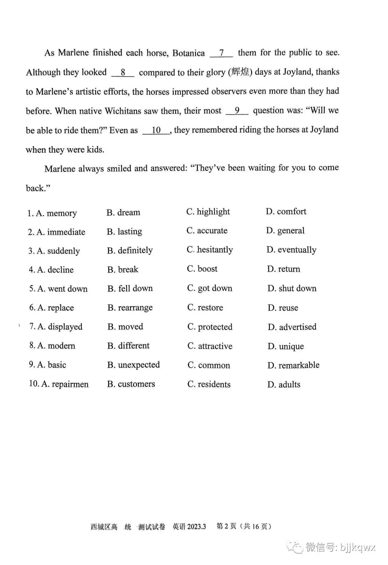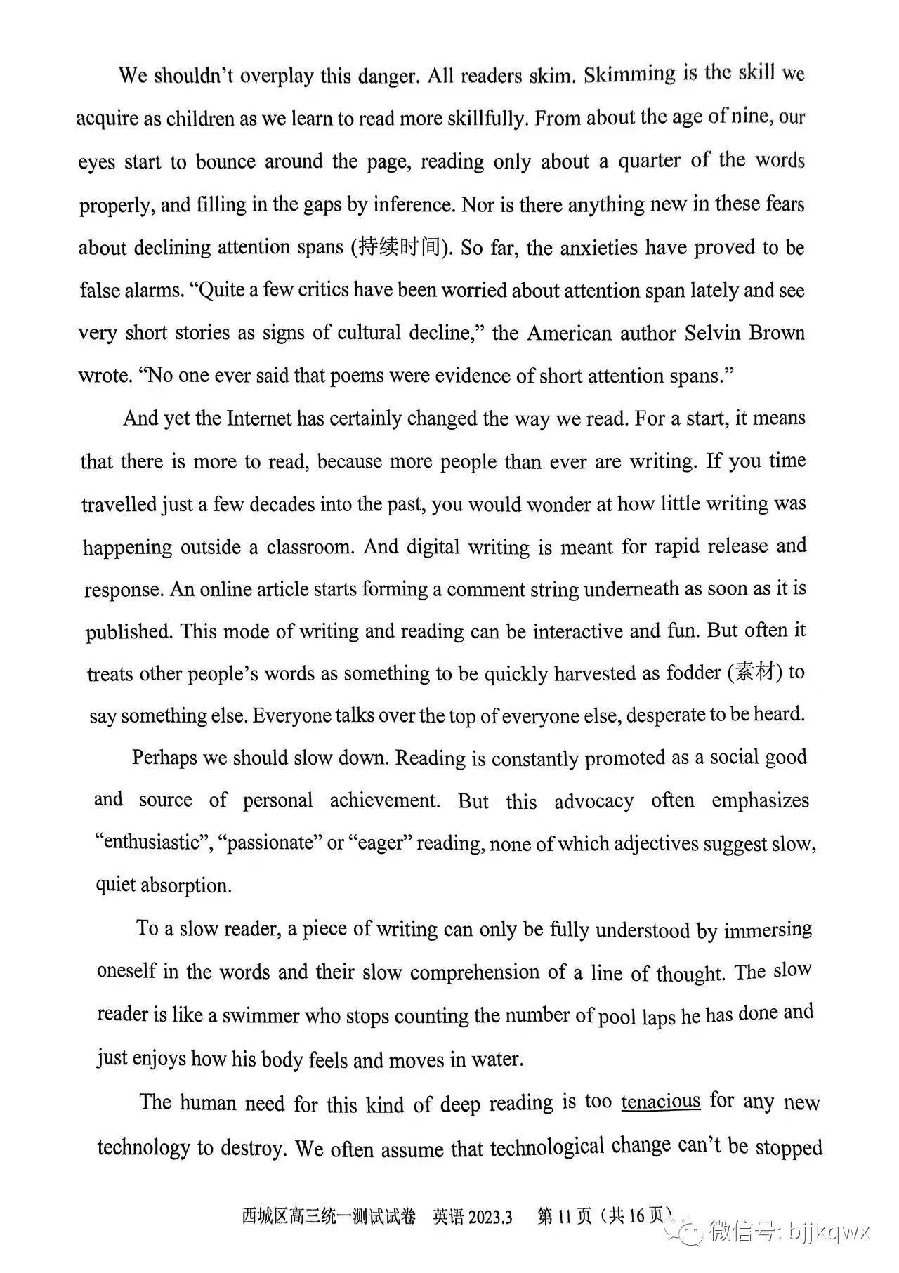 三、2023北京西城区高三一模英语答案及试题