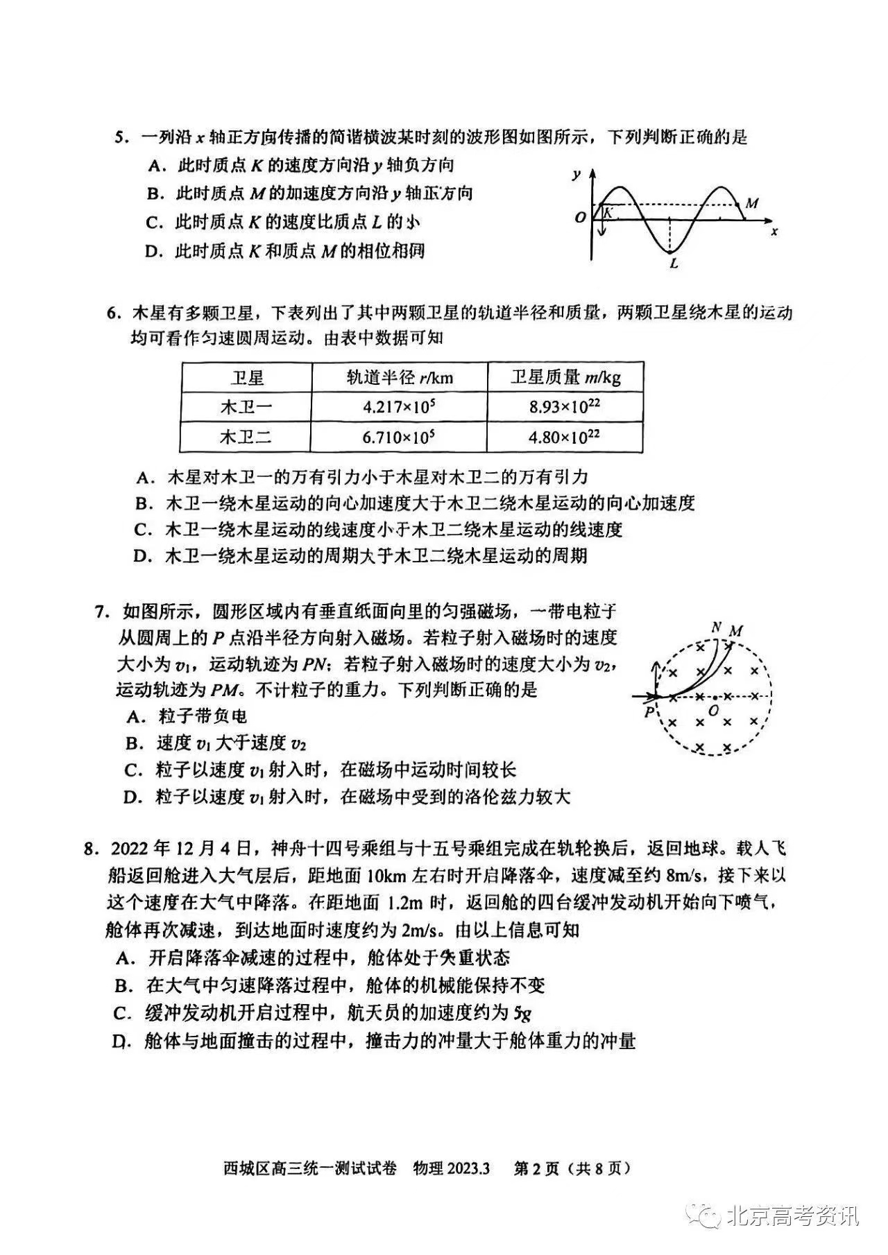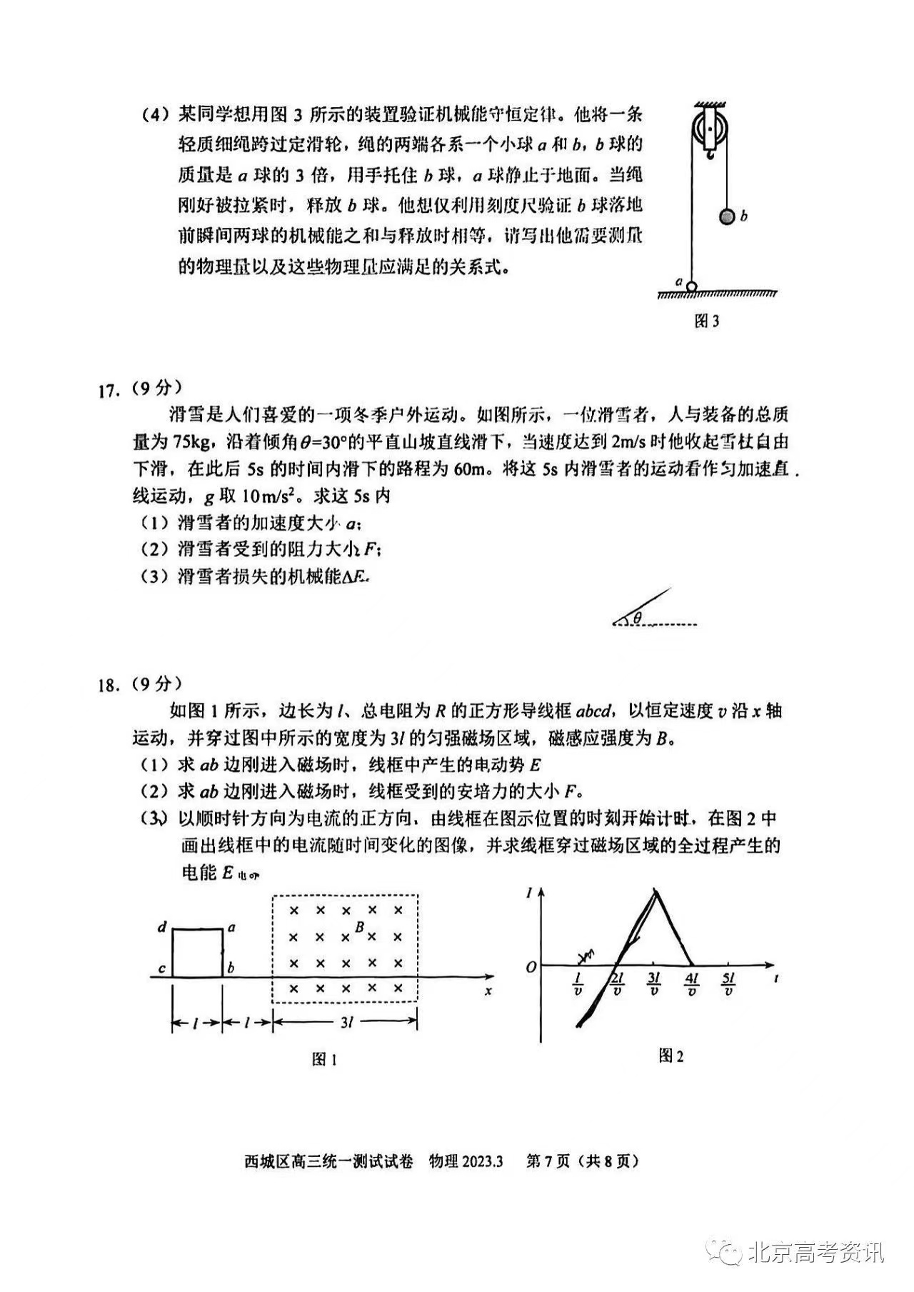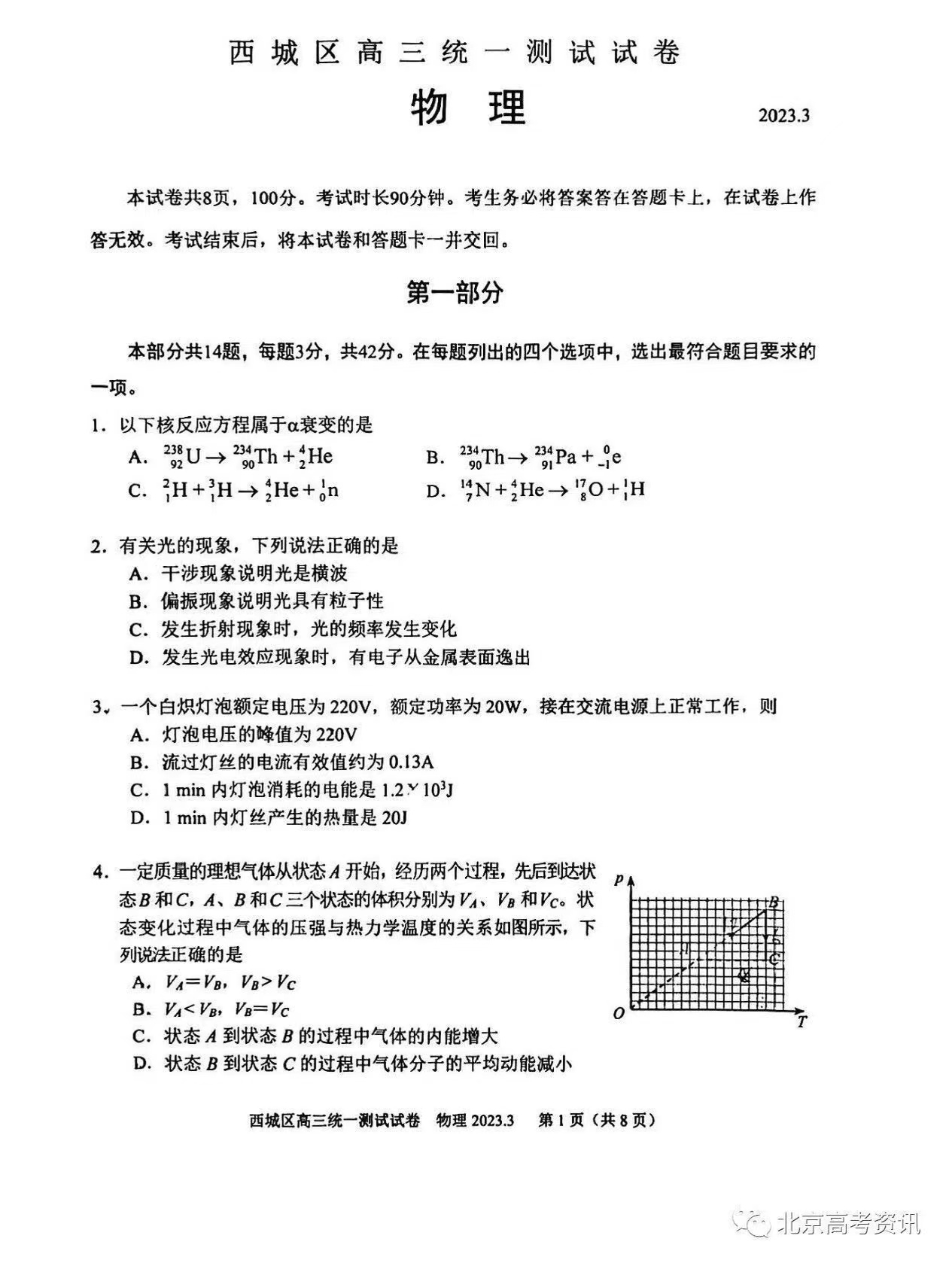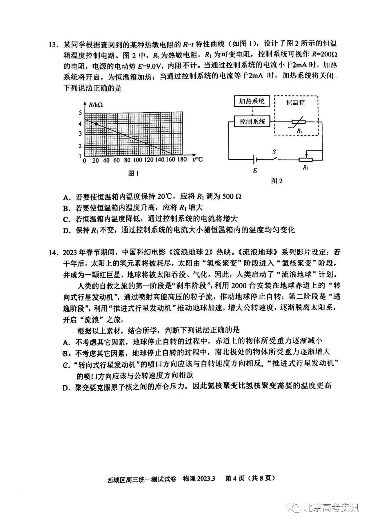 四、2023北京西城区高三一模物理答案及试题