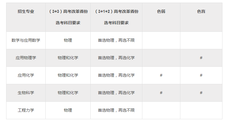 (1)标记“#”的专业表示不招收患有相关色觉异常(俗称色盲、色弱)的考生;