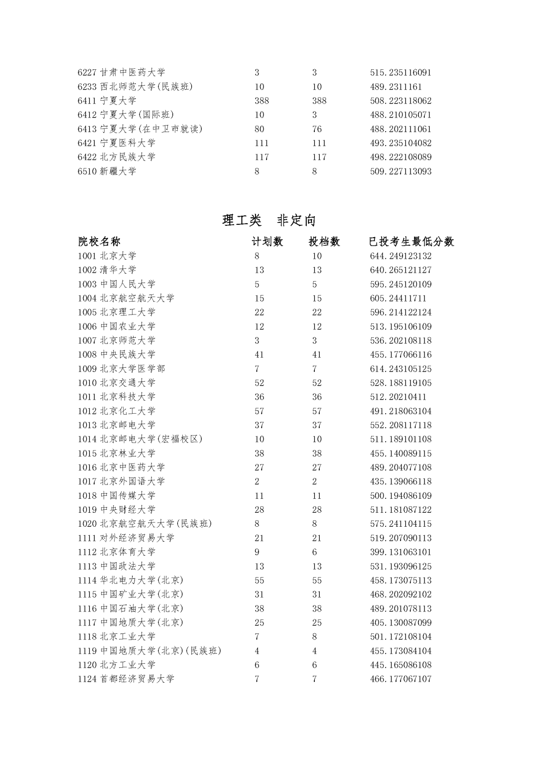 2、2023年宁夏高招第一批录取院校本科投档分数线(理科)