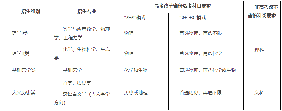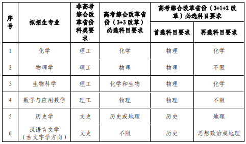 (3)基础文科类专业包括:中国语言文学类(古文字学方向)、历史学类、哲学类专业,旨在选拔并培养在基础文科领域有特长且有志于从事相关研究的学生。
