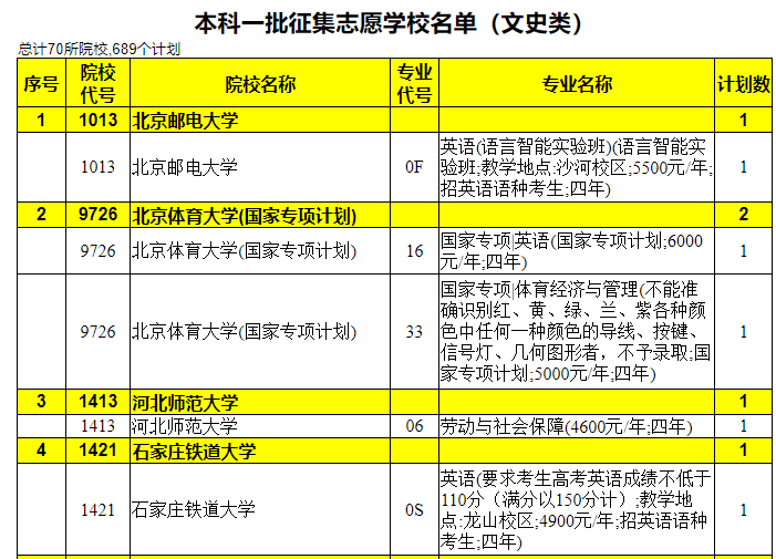 2024陕西本科一批征集志愿学校名单已公布,文科有北京邮电大学、河北师范大学、燕山大学、山西财经大学、石家庄铁道大学等,理科有北京化工大学、天津中医药大学、河北大学、山西大学等,完整版名单见下文计划表。
