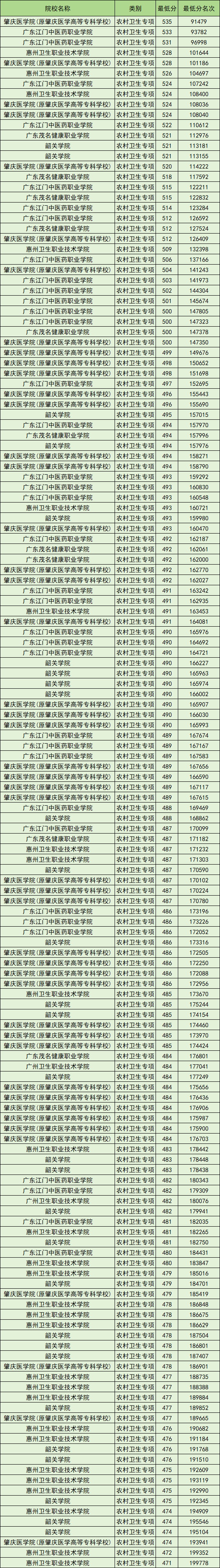 下面是2024全国农村卫生专项大学在广东物理类招生的录取分数线一览表
