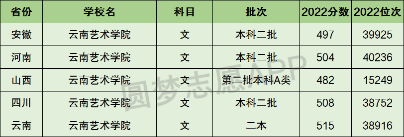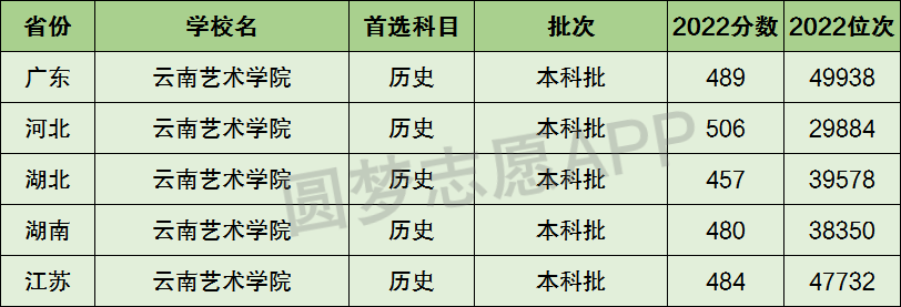 1、云南艺术学院在全国普通高考省份的【文科】招录数据,包含招生批次等信息: