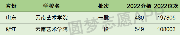 下面圆梦志愿将为大家展示云南艺术学院2022年在全国各省市的最低分数线和位次,大家可以在了解云南艺术学院在全国各省详细招生批次的同时,也顺便看看云南艺术学院的招生录取分数线是多少!
