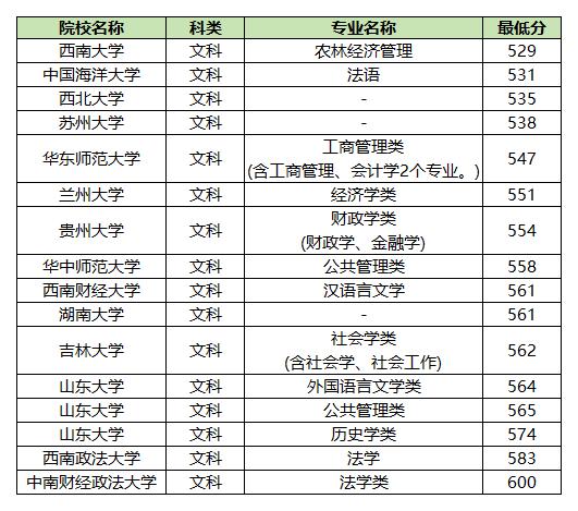 如果文科生分数在540分以下,建议报考:西南大学、中国海洋大学、西北大学、苏州大学。