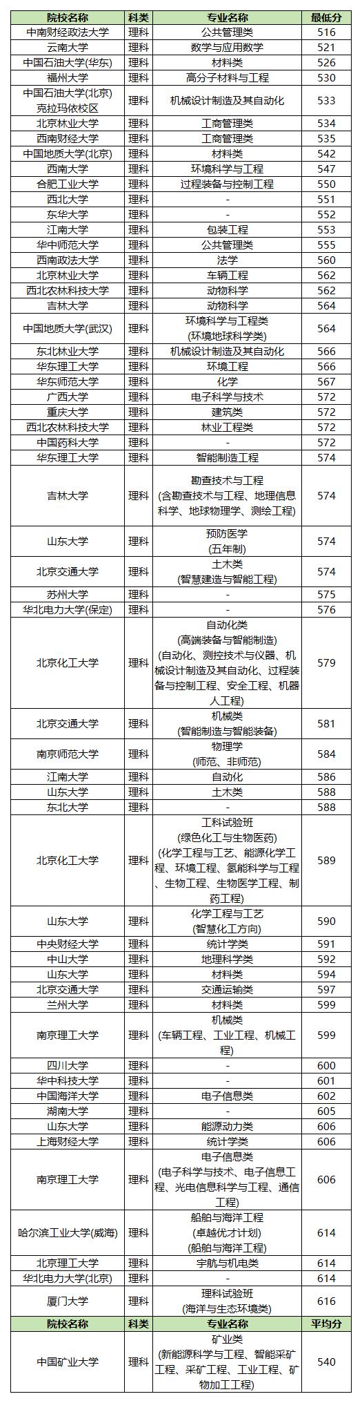 如果理科生分数在540分以下,建议报考:中南财经政法大学、云南大学、中国石油大学(华东)、福州大学、西南财经大学。