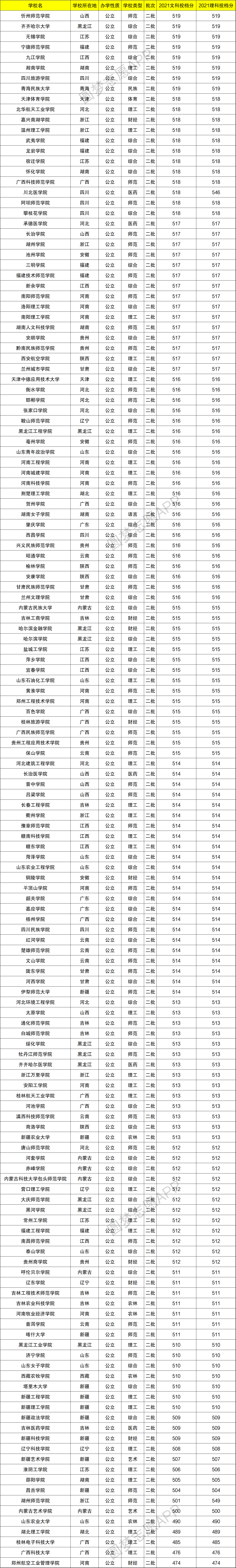 2021年在四川的文科最低投档线为511分,理科为468分。