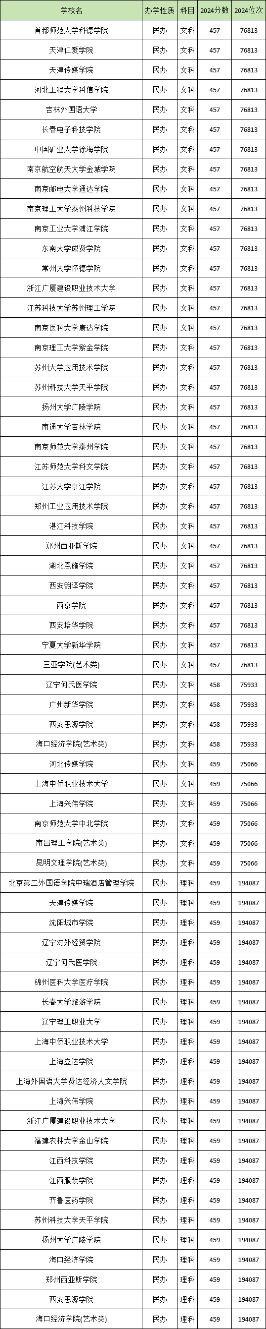 | 长春建筑学院 | 民办 | 434 | 44923 |