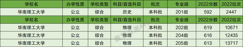根据上图可知,华南理工大学2022年在广东省历史类的投档分数线为592分,物理类的投档分数线为613分。