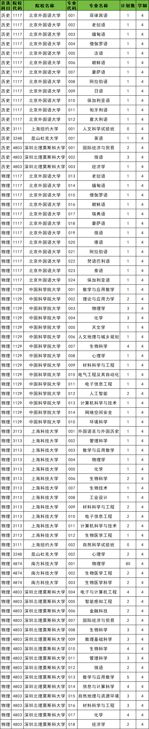 院校名单:北京外国语大学、深圳北理莫斯科大学、中国科学院大学、上海科技大学、南方科技大学、昆山杜克大学、上海纽约大学。